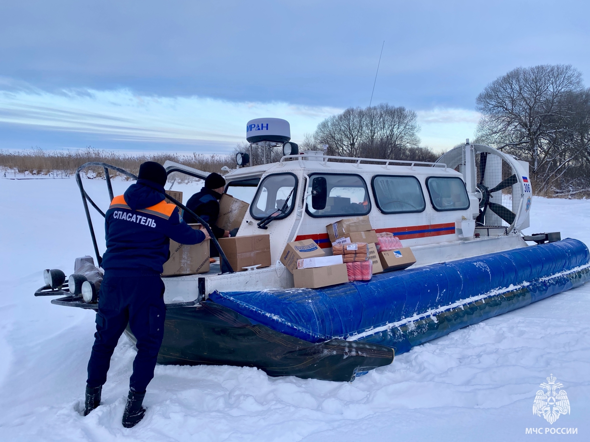 Для доставки продуктов и вещей спасатели использовали катер на воздушной подушке, для другого вида транспорта лед в данное время слишком ненадежный.