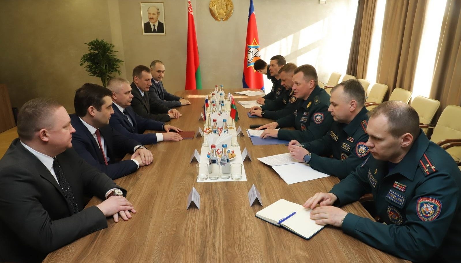 Представители РФ встретились с Министром по чрезвычайным ситуациям Республики Беларусь Вадимом Синявским. Они обсудили обмен опытом при подготовке кадров аварийно-спасательных служб, а также нормативно-правовую и методологическую базы. Стороны говорили о разработке и внедрении инновационных технологий, о расширении спектра совместных обучающих программ, а также об обмене курсантами и профессорско-преподавательским составом вузов двух стран.
