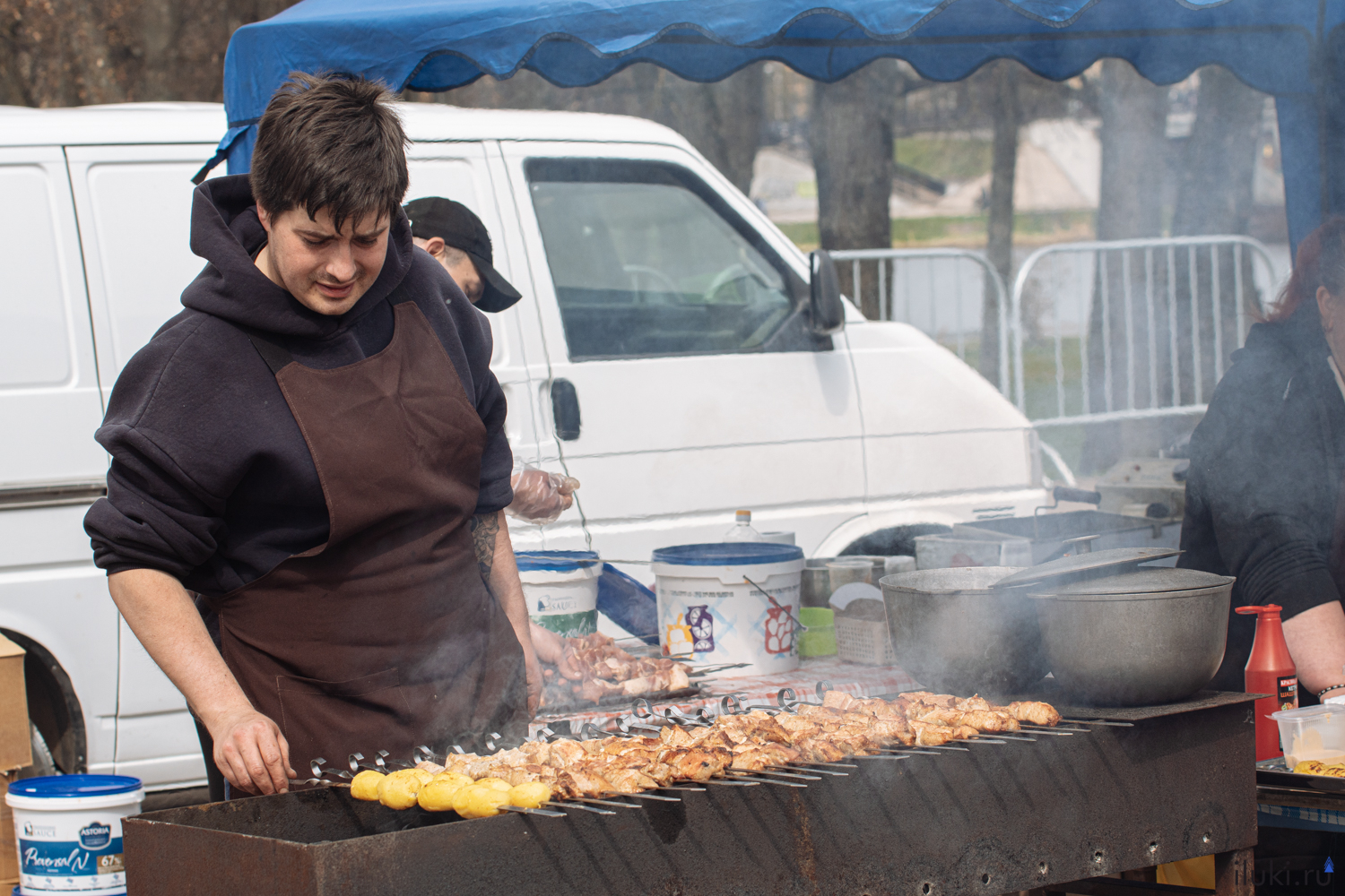 Веселую атмосферу создавали творческие коллективы Великих Лук, а проголодавшиеся посетители могли полакомиться шашлыком.