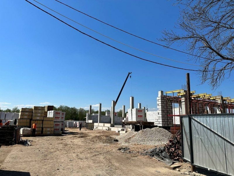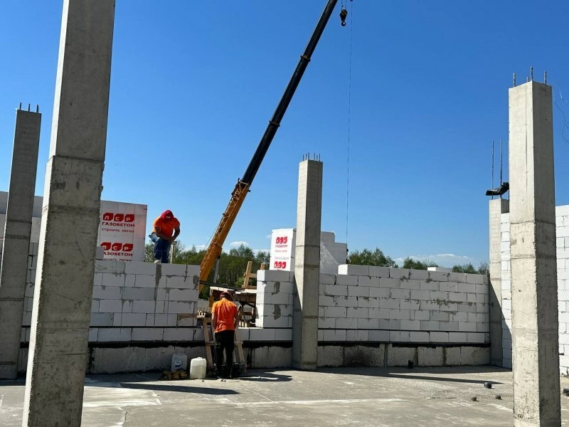 Подрядчик уже приступил к работам. На месте смонтирован фундамент, возводятся стены и внутренние перекрытия первого этажа.