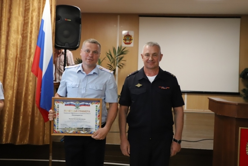За добросовестное выполнение служебных обязанностей, достижение высоких результатов в служебной деятельности, личную инициативу и примерность, проявленные при исполнении служебного долга почетной грамотой УМВД России по Псковской области наградили начальника цикла – преподавателя учебной части центра профессиональной подготовки УМВД России по Псковской области подполковника полиции Евгения Пыжова. Ценный подарок за добросовестное выполнение особо сложных и важных задач, достижение высоких показателей в трудовой деятельности вручили механику службы тылового обеспечения центра профессиональной подготовки УМВД России по Псковской области Николаю Носенкову.