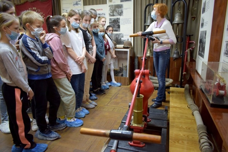 Школьники познакомились с историей пожарного дела, историческим и современным оборудованием огнеборцев из экспозиции музея, повторили правила безопасности.