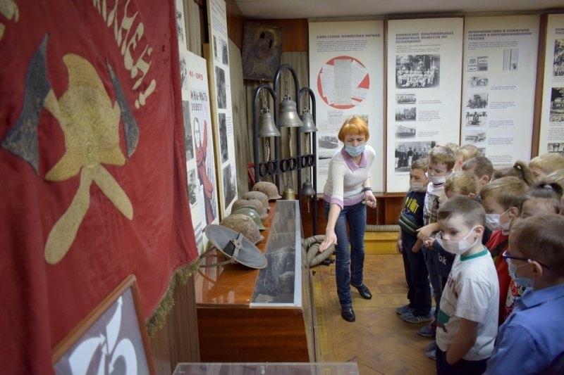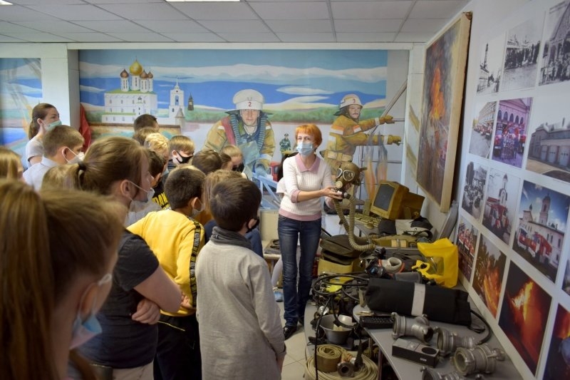 В музейных залах псковской Пожарно-технической выставки ребята увидели интересные исторические экспонаты, услышали звон пожарного колокола и звук современной сигнализации, а с помощью интерактивных макетов узнали правила поведения при грозе и при возгорании в многоквартирном доме.