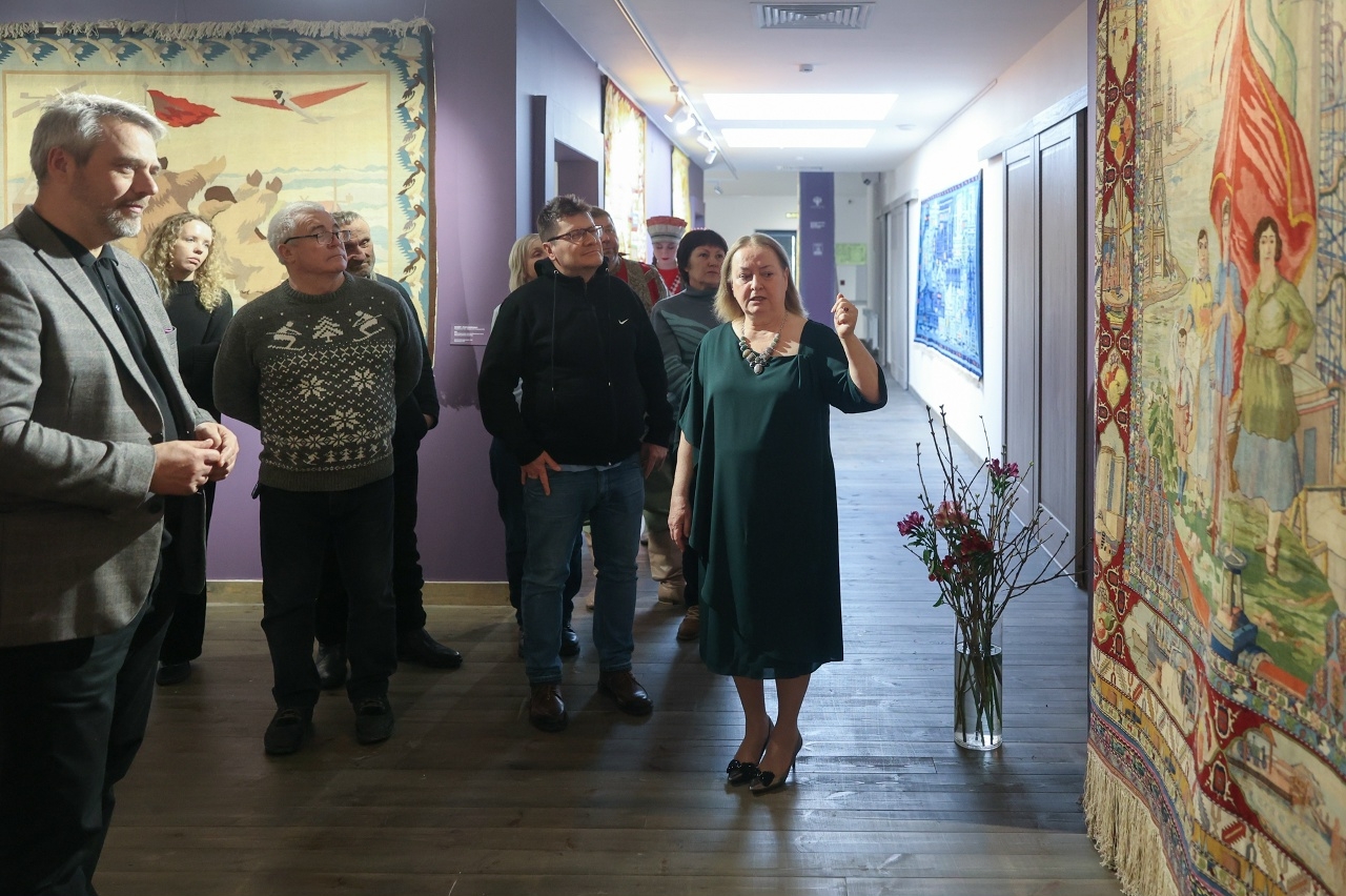 Наталья Юрьевна Кайкова прочитала приветственный адрес от директора Всероссийского музея декоративного искусства Татьяны Вячеславовны Рыбкиной, а после торжественного перерезания ленточки куратор выставочного проекта, хранитель ковровой коллекции Зулима Ануаровна Безирова провела для гостей вернисажа увлекательную авторскую экскурсию по выставке, отметив, что музейная коллекция уникальных ковров впервые представлена на выезде в столь значительном масштабе.