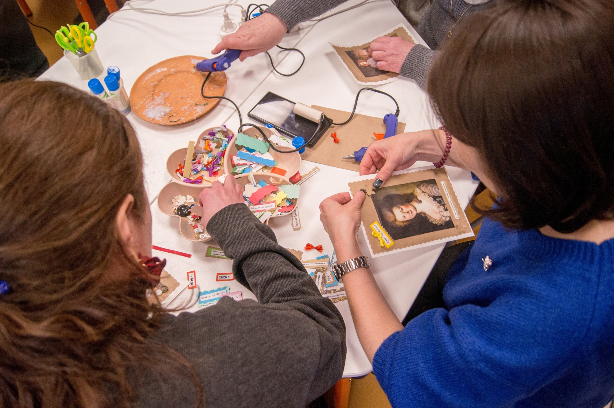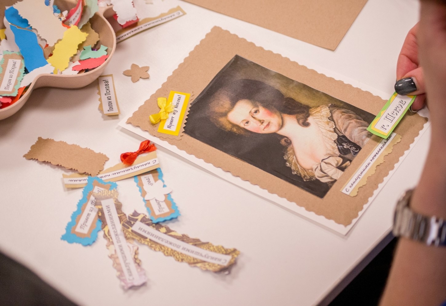 Участники праздника занимались творчеством на мастер-классе по изготовлению бус из дидюль, создавали обережные куклы, увлеклись дворянским хобби прямиком из XIX века – делали подарочные открытки изысканного оформления.