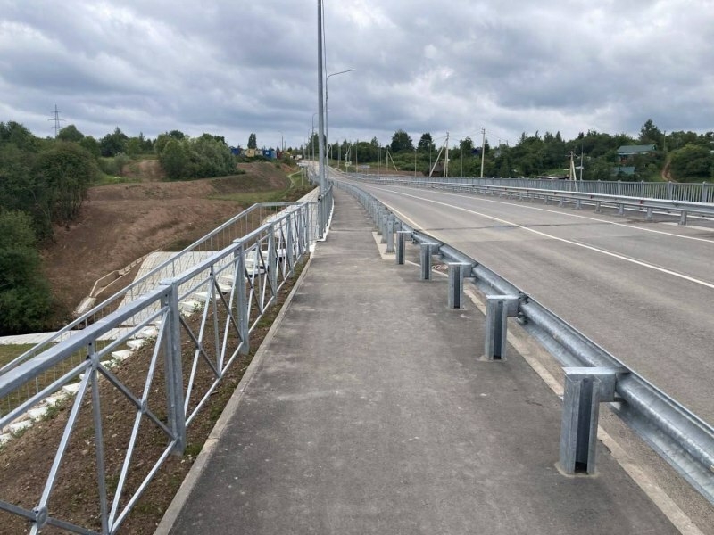 Кроме того, для безопасности дорожного движения на мосту обустроен двусторонний тротуар, смонтировано наружное освещение.