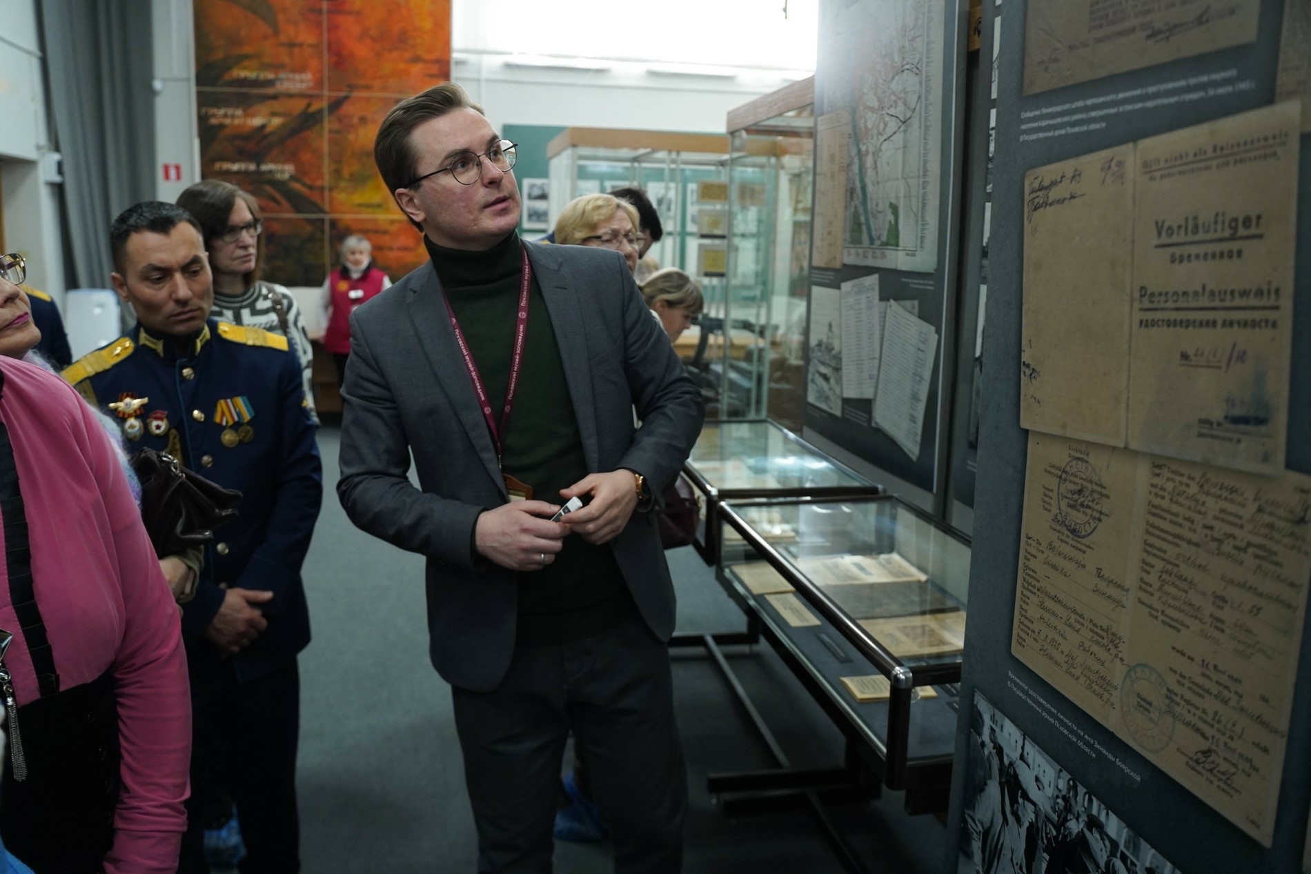 Ключевым событием праздничной программы стала экскурсия по открывшейся в преддверии 23 февраля выставке «На страже завоеваний Октября» и экспозиции «Псковский край в годы Великой Отечественной войны».