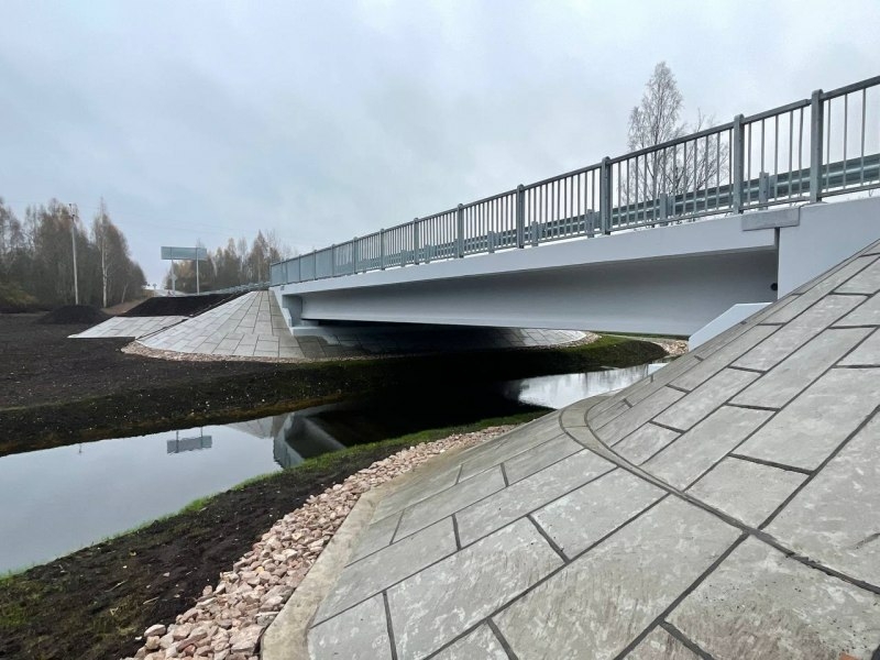 В ходе капремонта подрядная организация полностью обновила конструкцию моста, выполнила монтаж балок пролетного строения, устройство дорожной одежды, установила новые перила и барьерные ограждения.