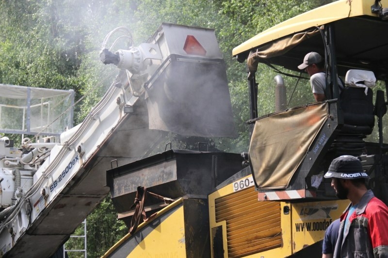 Специалисты укладывают верхний слой асфальтобетонного покрытия на проезжей части дороги. Параллельно ведется ремонт существующих автобусных остановок и посадочных площадок.