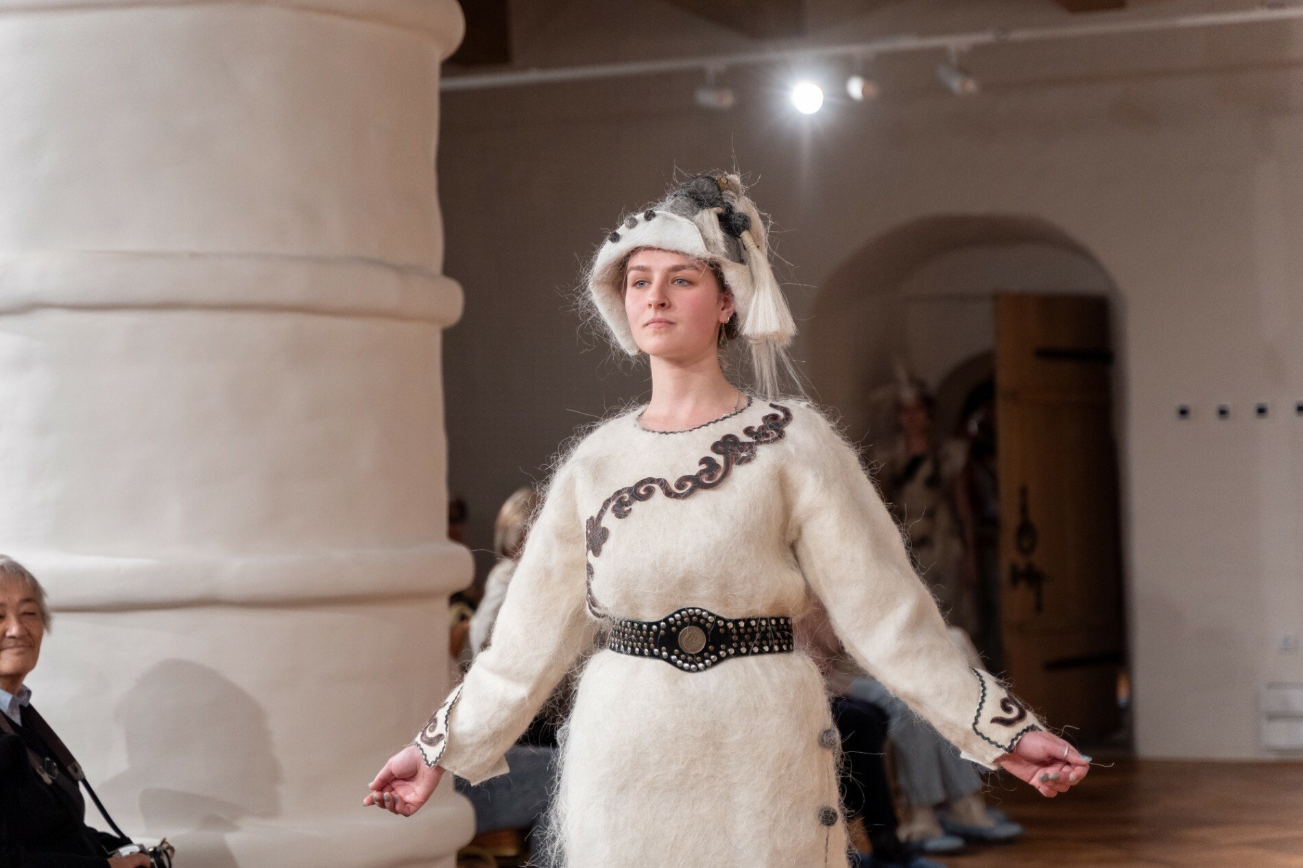 Артисты ансамбля «Уграда» продемонстрировали зрителям коллекцию костюмов, изготовленных по образцам праздничных женских нарядов Торопецкого уезда Псковской губернии, отличительной чертой которых является уникальный головной убор «шишак». После дефиле гостей концерта ждали протяжные, хороводные, лирические и обрядовые песни Псковского края, а также традиционные пляски и хороводы. Особенным подарком для псковичей стал показ уникальных народных костюмов из конского волоса авторства Даримы Жалсановой – руководителя Театра моды «Морин эрдэни» и традиционных бурятских нарядов авторства Цыбикмы Берзиной. Дефиле сопровождалось фольклорными мотивами народа, чей костюм демонстрировался на подиуме.