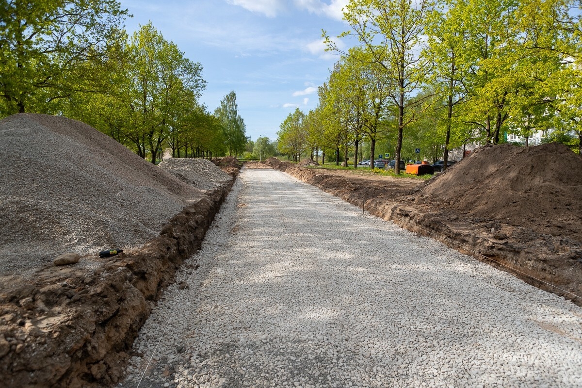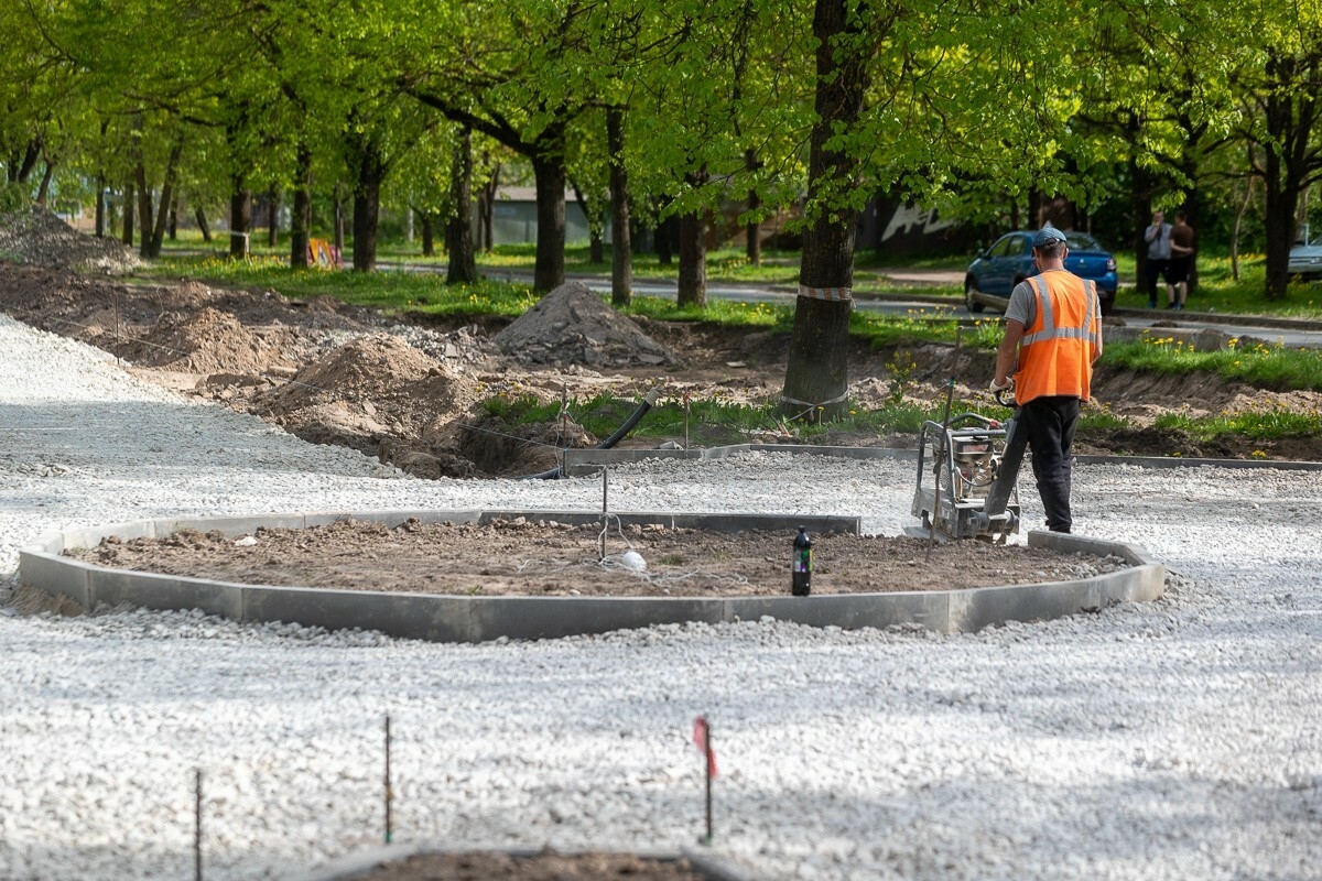 Сейчас специалисты выполняют работы по подготовке основания под пешеходные дорожки, начаты работы по монтажу бортового камня. Проект предусматривает обустройство детской и спортивной площадок для разных возрастов. Также на объекте установят видеонаблюдение, парковые светильники, скамейки, нанесут разметку велодорожки.