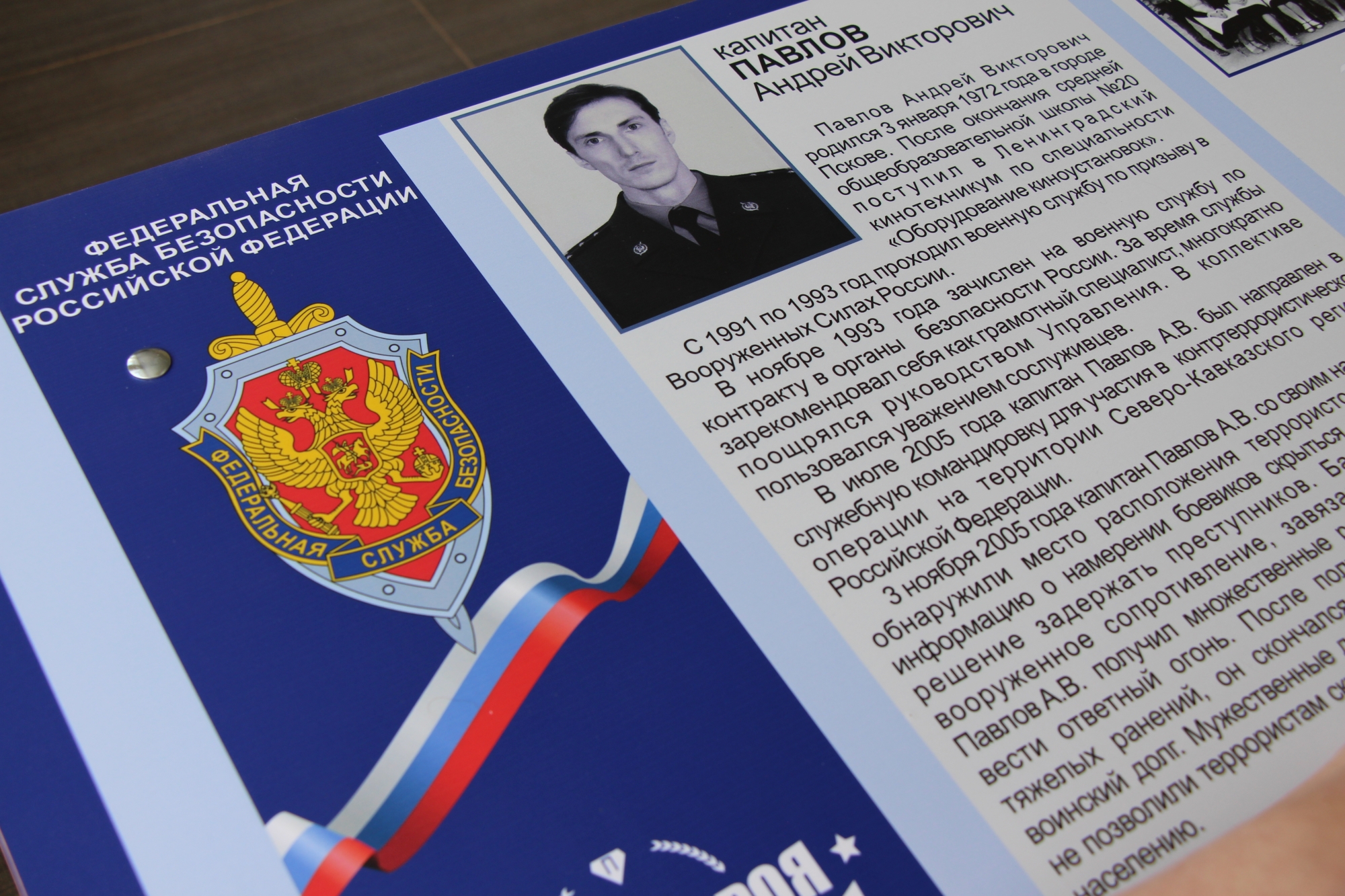 В естественно-математическом лицее Пскова 19 мая 2023 года в честь выпускника учебного заведения, сотрудника УФСБ России по Псковской области капитана Андрея Павлова, погибшего при исполнении служебного долга на Северном Кавказе, открыта «Парта Героя».