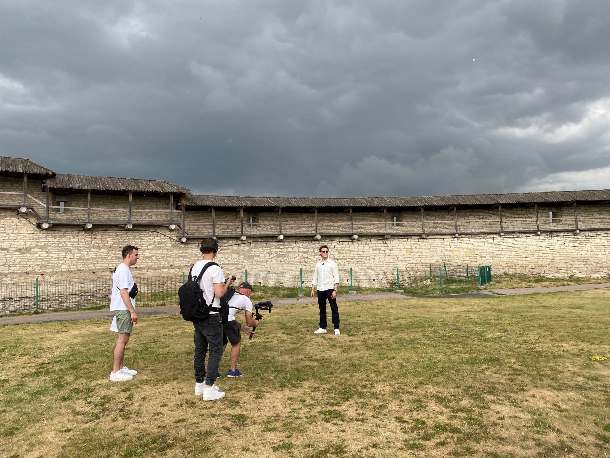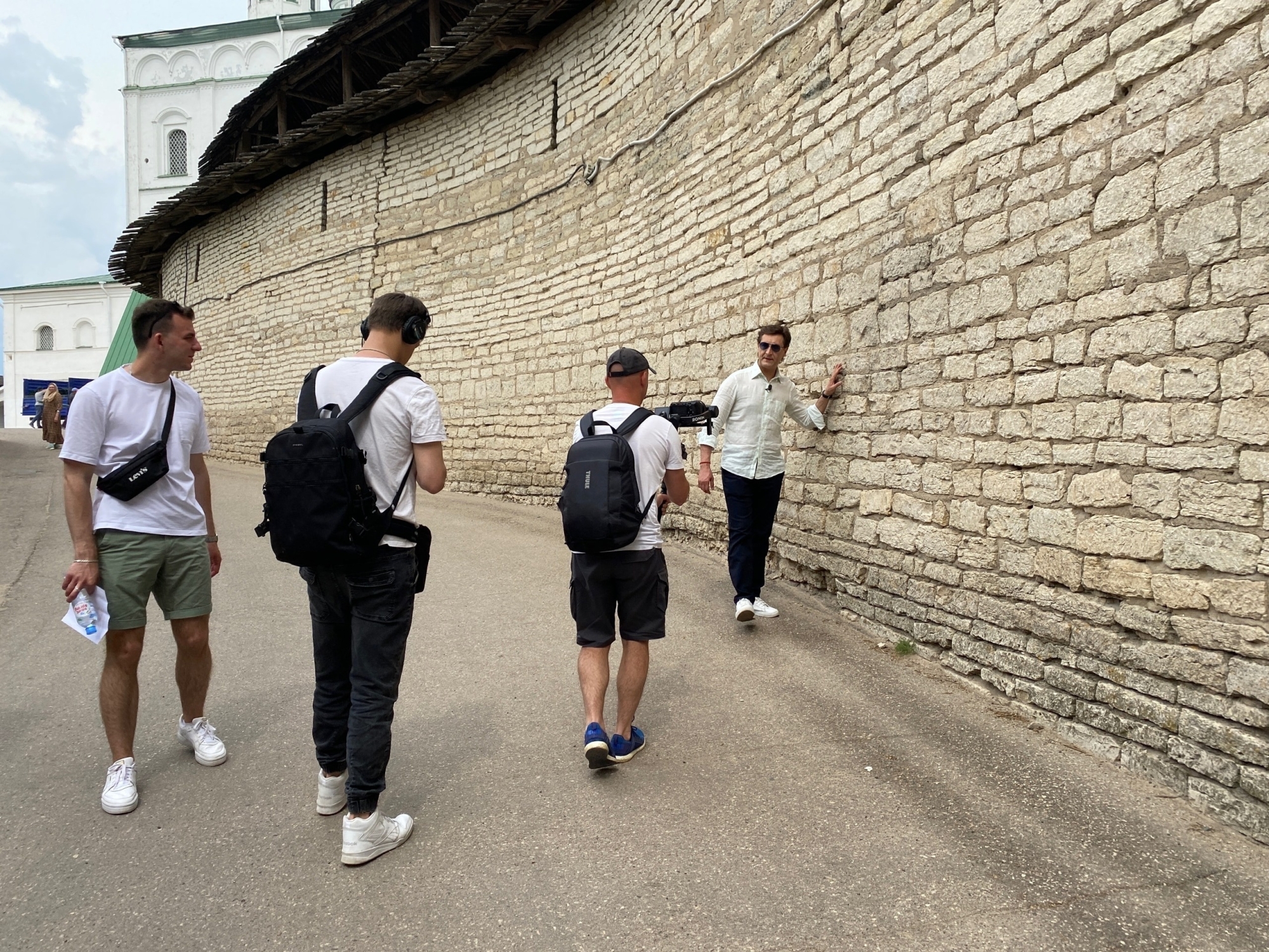 Один из фильмов будущего многосерийного проекта будет посвящен славной истории древнейшей крепости России – Псковского Крома. Консультируют съемочную группу сотрудники музея-заповедника. Так, начальник отдела «Псковский Кремль» Роман Коваль провел журналистов по территории Крома, рассказал о боевой славе псковичей, а также об особенностях псковской крепости.