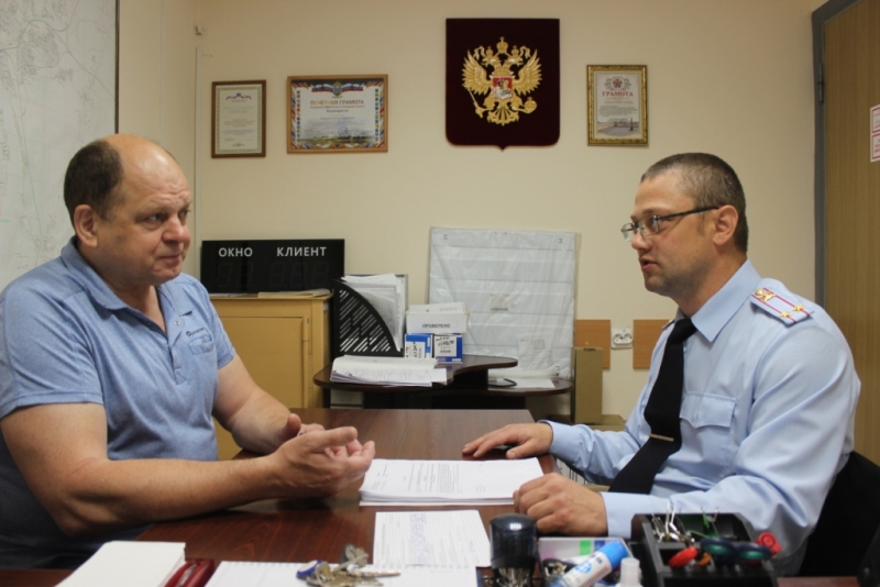 Начальник отдела подполковник полиции Алексей Пятериков ознакомил заместителя председателя Общественного совета при УМВД России по городу Пскову Сергея Карпухина с основными направлениями деятельности подразделения, в том числе с порядком получения госуслуг и временными нормативами их оказания.