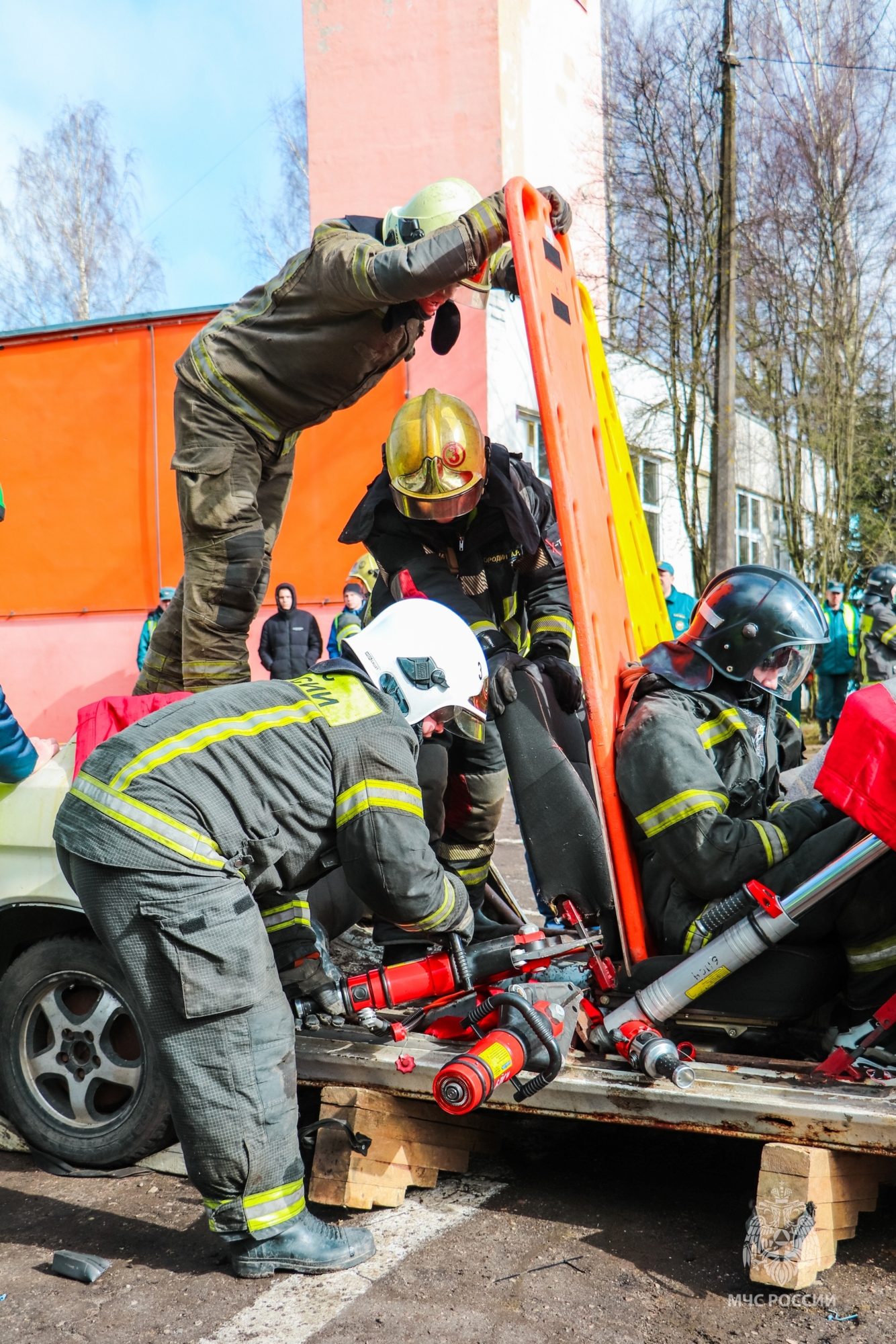 В ходе соревнований пожарные-спасатели с помощью гидравлического аварийно-спасательного инструмента разжимали капот автомобиля для обесточивания внутренней бортовой электросети, резали стойки кузова. Тушили внезапно вспыхнувшее возгорание. Одновременно с этим спасатели накрывали водителя и пассажира покрывалами для защиты от «осколков» выбиваемых стекол и оказывали им первую медицинскую помощь. Пострадавших с помощью носилок извлекали из поврежденного транспортного средства и передавали бригаде «скорой помощи».