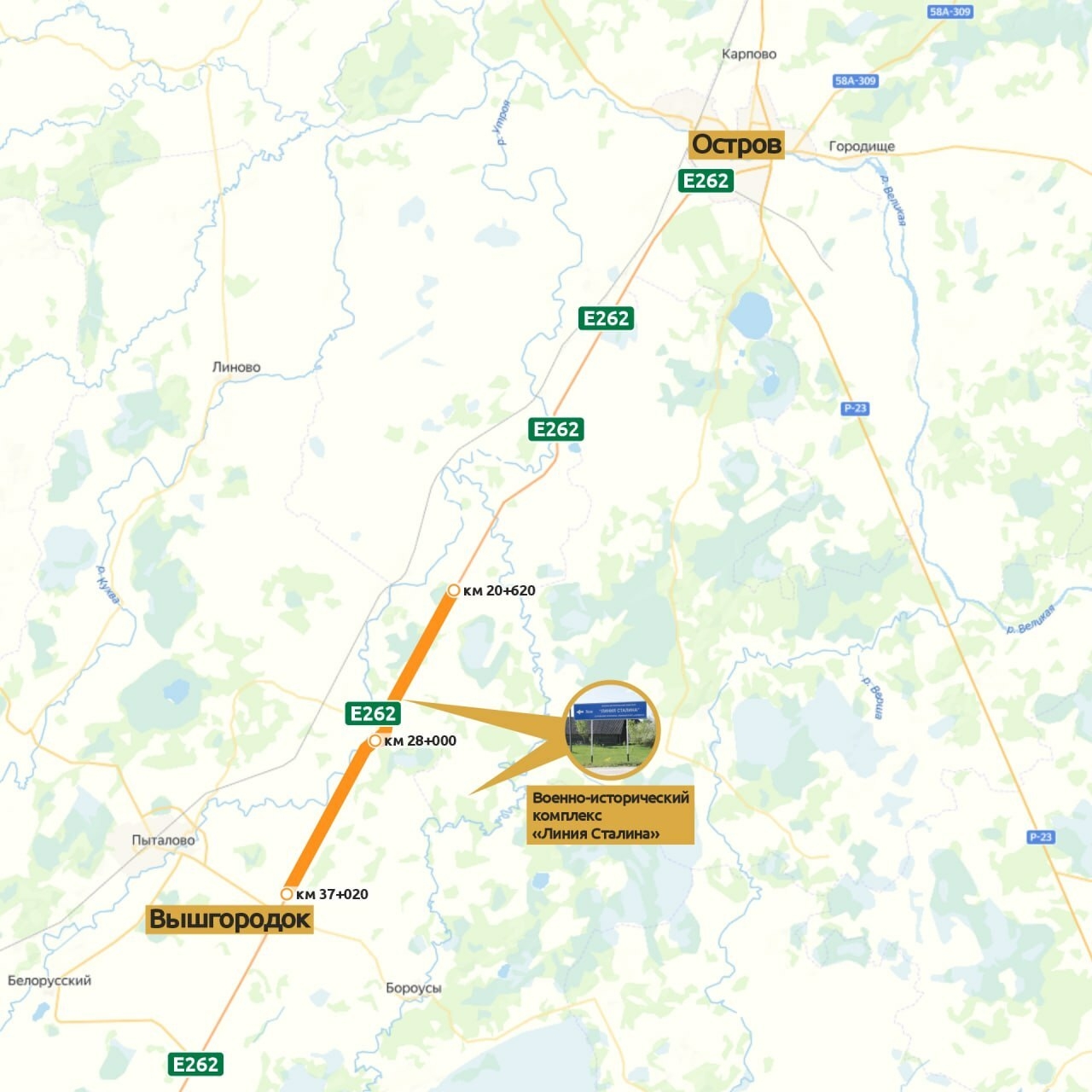 Также в этом году будет продолжен ремонт автомобильной дороги Остров – Вышгородок – граница с Латвийской Республикой. Объект переходящий. За два года в нормативное состояние планируется привести два участка трассы: в этом году специалисты обновят 9 км трассы (км 28+000 – км 37+020) в Пыталовском муниципальном округе, в следующем – еще 8 км (км 20+620 – км 28+000) в Островском районе.
