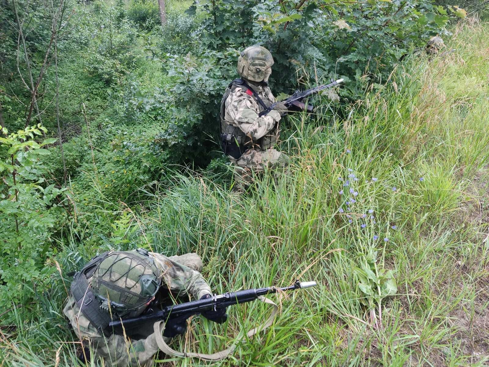 В ходе специальной операции по обезвреживанию условных вооружённых преступников в условиях лесистой местности, спецназовцы отработали навыки взаимодействия штурмовых групп, способы скрытого передвижения на местности, оборудование позиций для ведения огня.
