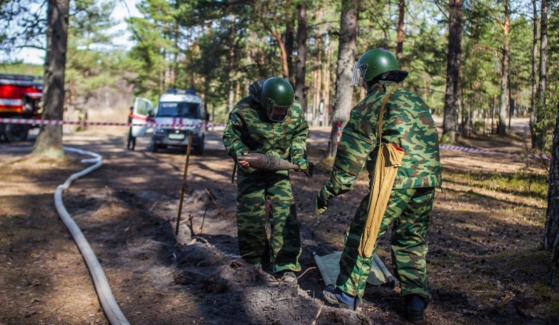 В ходе учений поступает новая водная – в результате опашки был обнаружен взрывоопасный предмет времен Великой Отечественной войны. Для его обезвреживания прибывает группа разминирования поисково-спасательного отряда города Псков и после идентификации ВОП вывозит его в безопасное место.