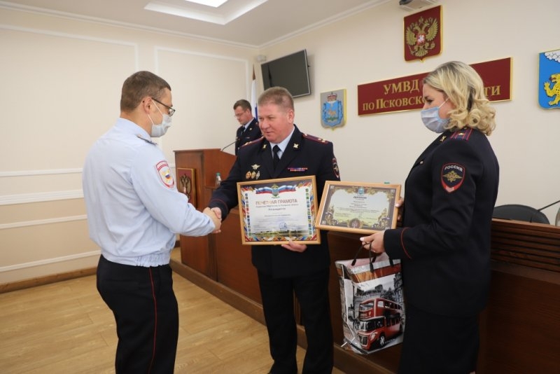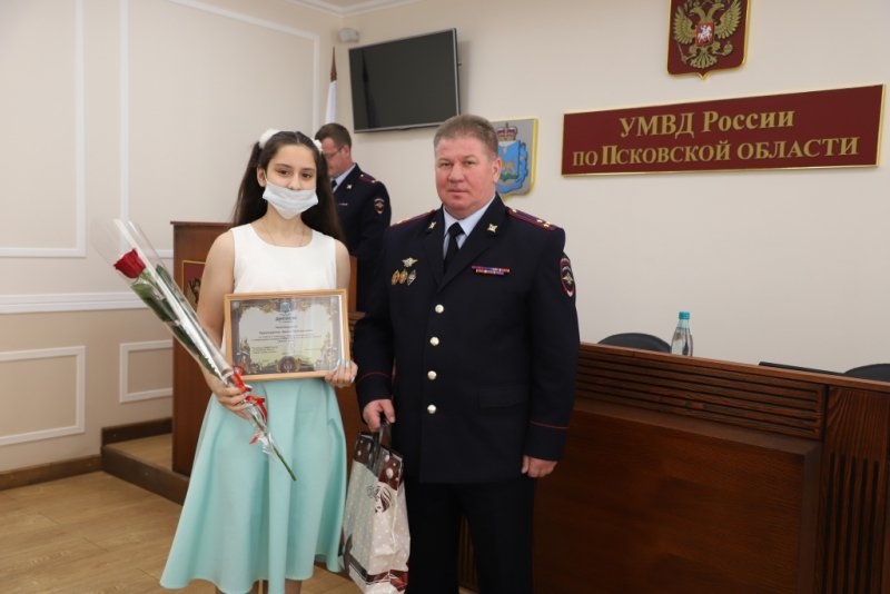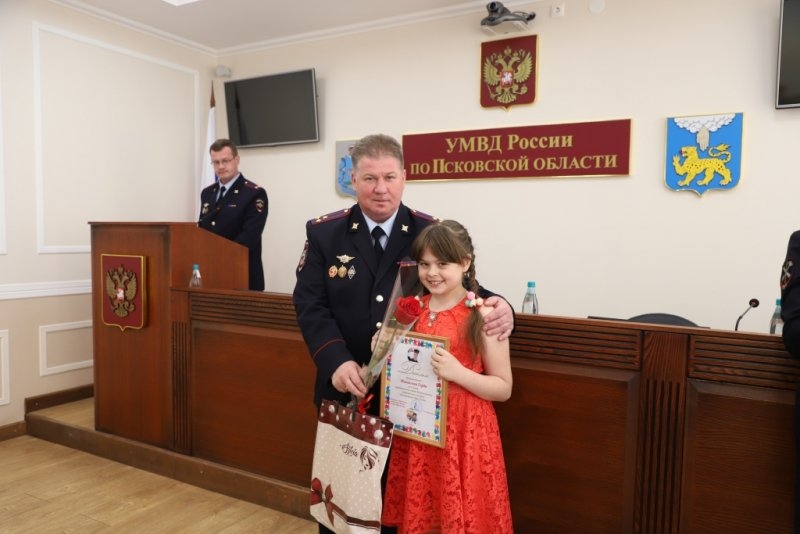 В торжественной обстановке в преддверии Дня защиты детей временно исполняющий обязанности начальника УМВД России по Псковской области полковник полиции Александр Никульников поздравил победителей регионального этапа Всероссийского конкурса детского творчества «Полицейский Дядя Степа». Участников наградили дипломами и памятными призами, а также руководитель ведомства выразил слова благодарности и вручил почетные грамоты родителям участников за достойное воспитание детей.
