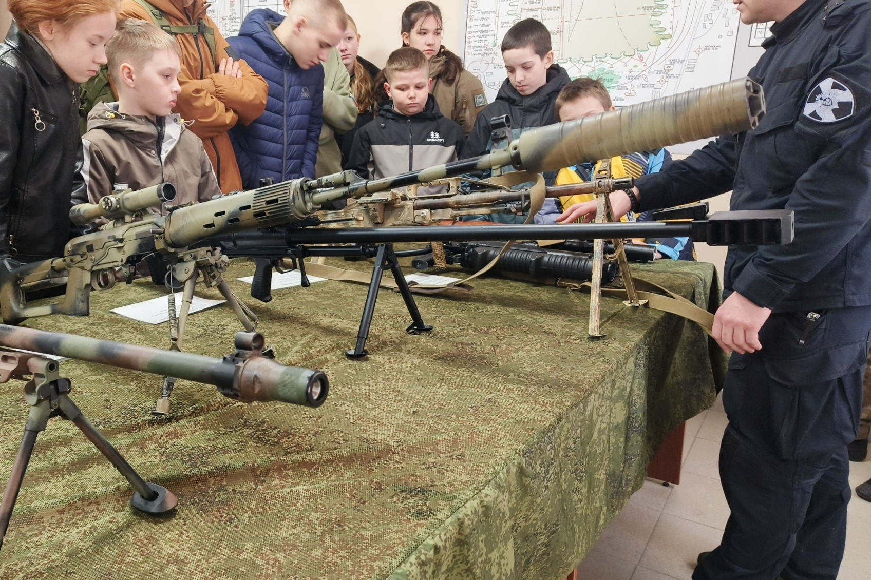 Кроме того, для школьников организовали выставку вооружения. Школьники рассматривали образцы оружия и экипировки, задавали вопросы о принципах их работы и особенностях применения.