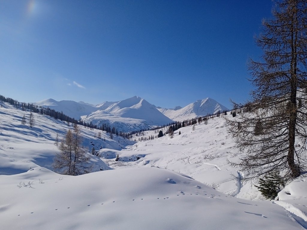 Относительно неглубокий и рыхлый снежный покров способствовал благоприятной зимовке копытных в этом году. По долинам рек было много маралов и лосей, в отдельных урочищах – косуль. При этом сложившиеся снежные условия не были благоприятны для успешной охоты хищников. Следы волков отмечались только по бесснежному побережью Телецкого озера. Только следы росомахи обнаружены даже в самых удаленных и многоснежных урочищах.
