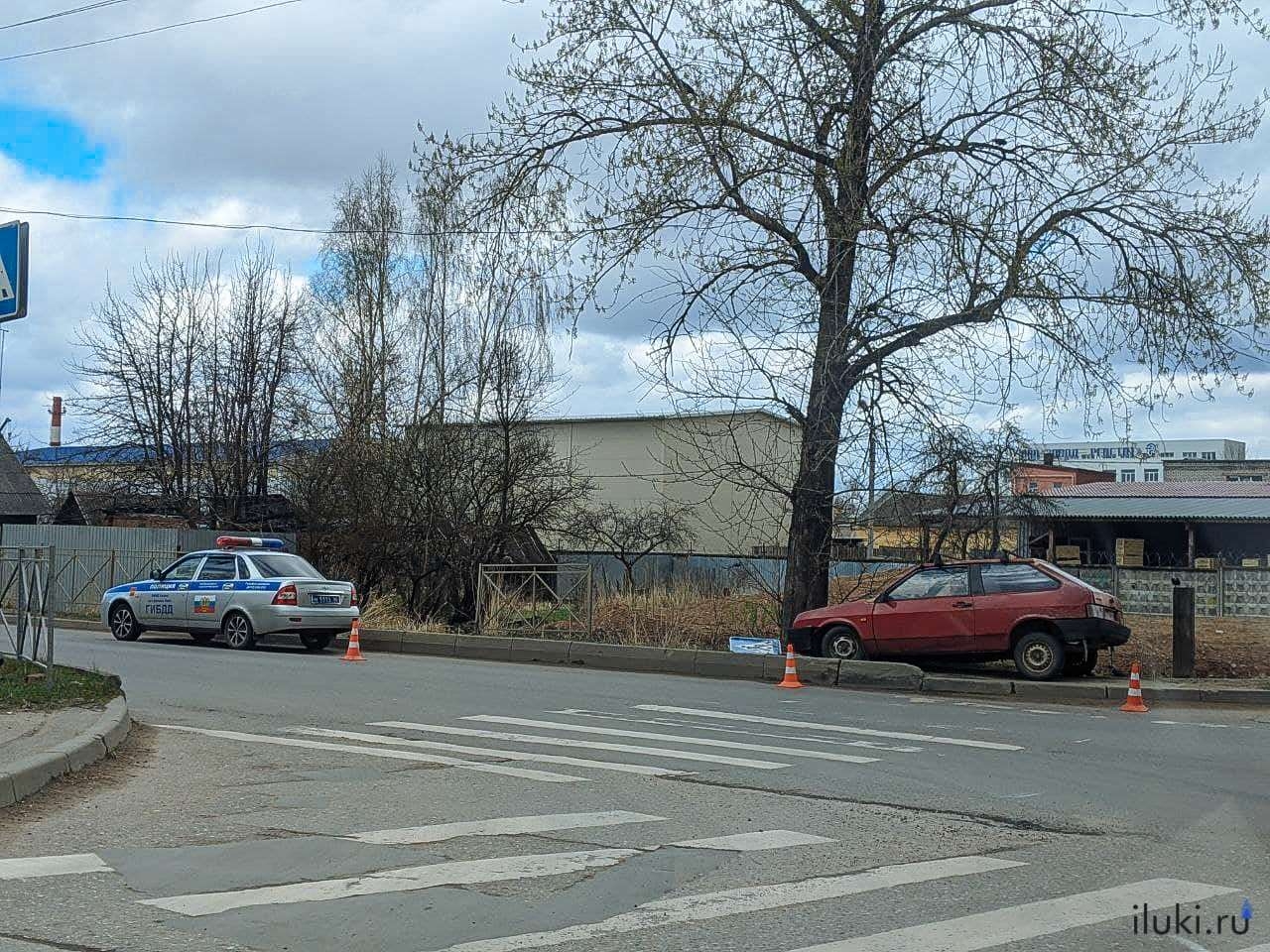 На перекрестке на улице 3-й Ударной Армии в Великих Луках автомобиль вылетел на тротуар и сбил знак пешеходного перехода. На месте ДТП работают сотрудники ГИБДД.