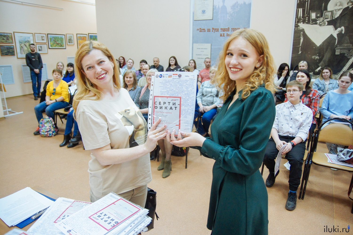 18 апреля в Центральной городской библиотеке прошло торжественное подведение итогов «Тотального диктанта». В этом году его написали 456 307 человек в России и за рубежом. 95 приняли участие в акции на пяти площадках в городе на Ловати. Напомним, всем желающим пришлось писать под диктовку рассказ Василия Авченко о путешественнике, писателе и исследователе Дальнего Востока Владимире Арсеньеве.