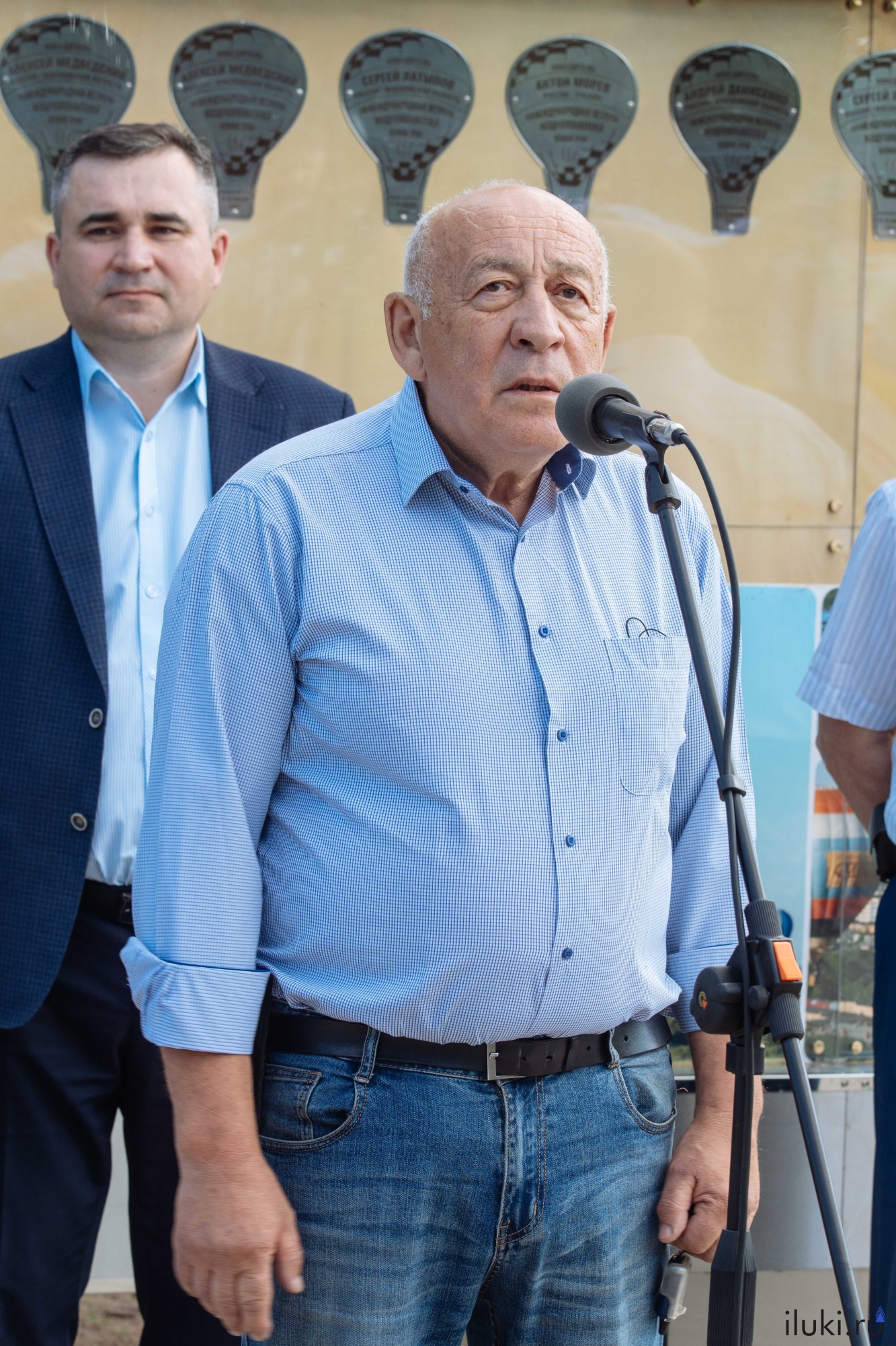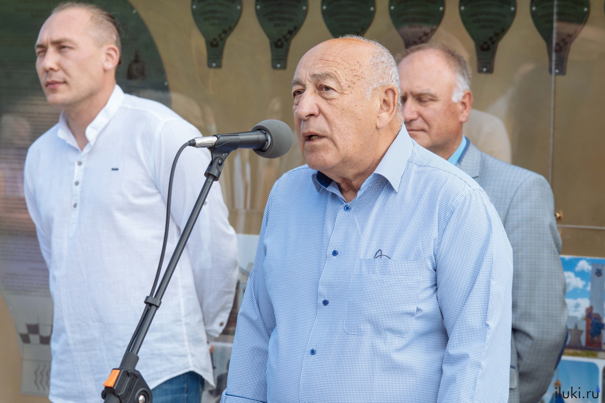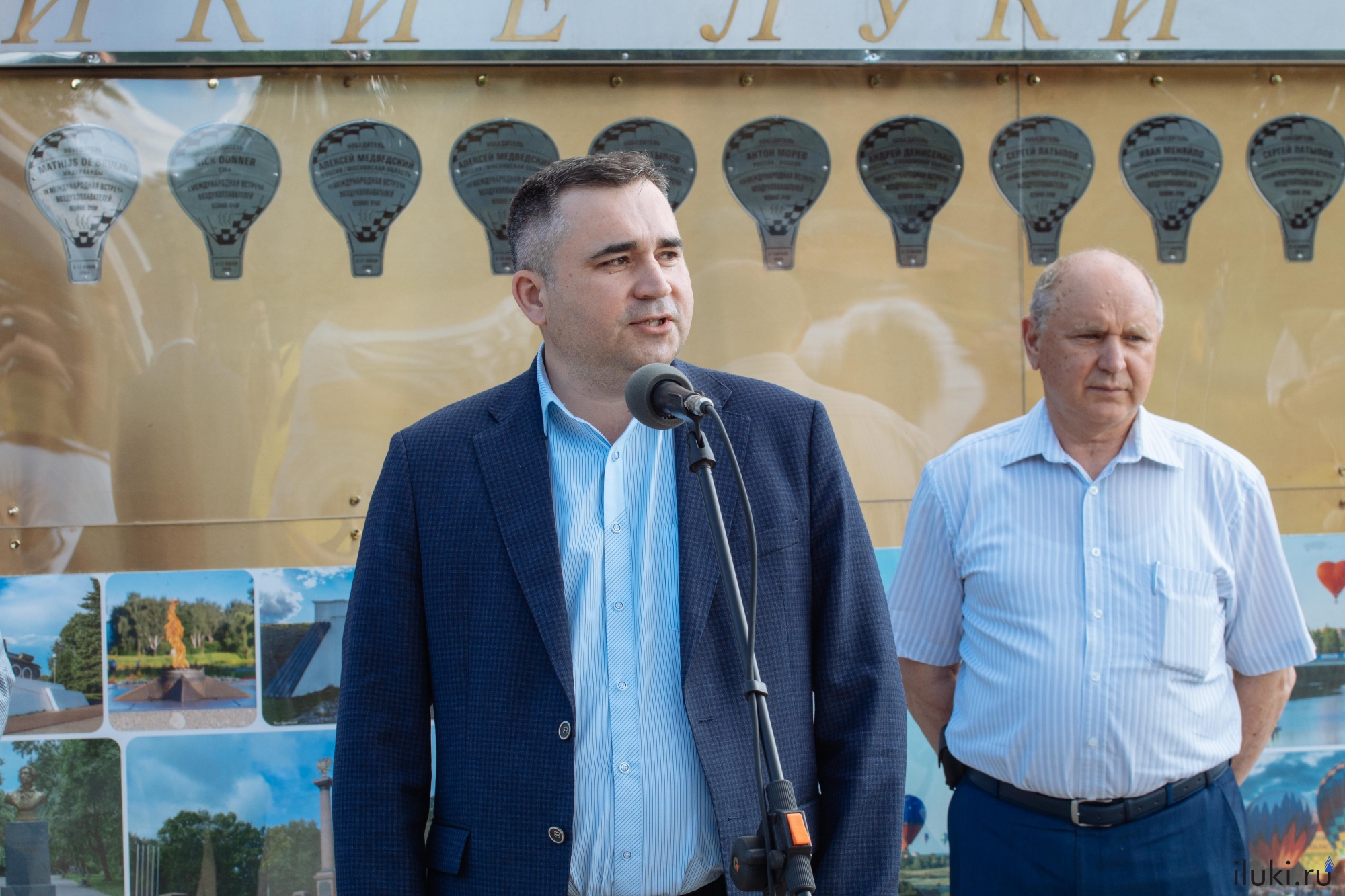 Монумент возведен по инициативе «Опытного завода «Микрон» на средства почетного гражданина города Великие Луки Бориса Каракаева.
