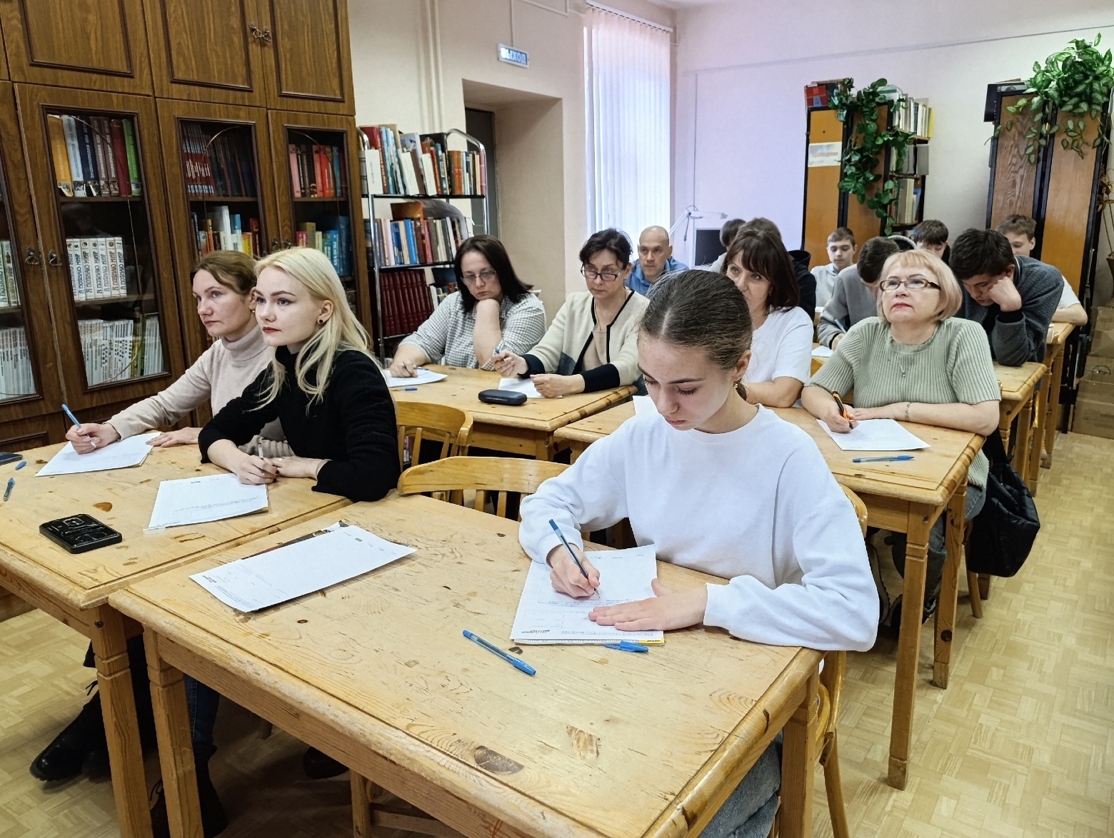 Библиотека семейного чтения вновь распахнула свои двери для участников Тотального диктанта. В читальном зале, среди знакомых с детства книг, участники писали текст Алексея Варламова.