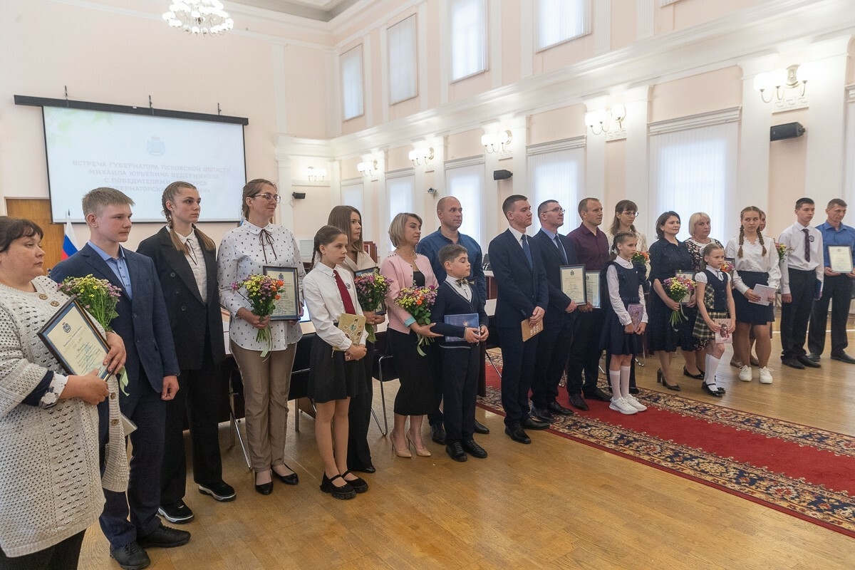 Завершилось мероприятие встречей Губернатора с родителями победителей конкурса, которых он поблагодарил за воспитание ребят: «Я понимаю, какой это труд, — создать условия для того, чтобы ребенок был замотивирован на учебу, особенно на хорошую учебу. И при этом, чтобы он занимался спортом и допобразованием. Мы со своей стороны тоже делаем все необходимое, ведь какими бы талантливыми не были дети и учителя, важно, чтобы была достойная инфраструктура. При поддержке федерального центра в этом направлении уже сделано очень много. Рассчитываю, что целый ряд дополнительных площадок, объектов для детей, молодежи появится в нашем регионе в будущем. Надеюсь, что большинство из вас примет решение здесь получить образование, вы будете любить Псковскую землю и никуда отсюда не уедете».