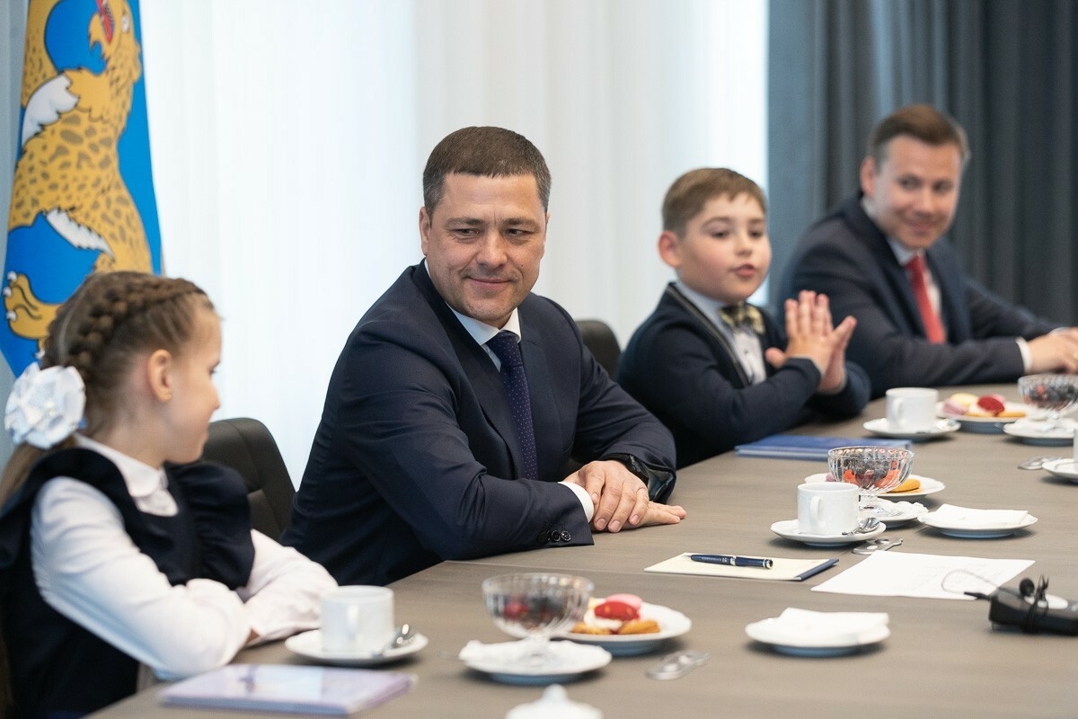 Самые младшие участники встречи оказались и самыми разговорчивыми. Это одноклассники, учащиеся 2А класса Островской средней школы № 7 имени В.Н. Пушкарева Софья Тимофеева и Святослав Васильев. Святослав — лидер по количеству пятерок. В его дневнике 689 оценок «отлично». Второклассник стал новым рекордсменом акции «Губернаторский дневник».