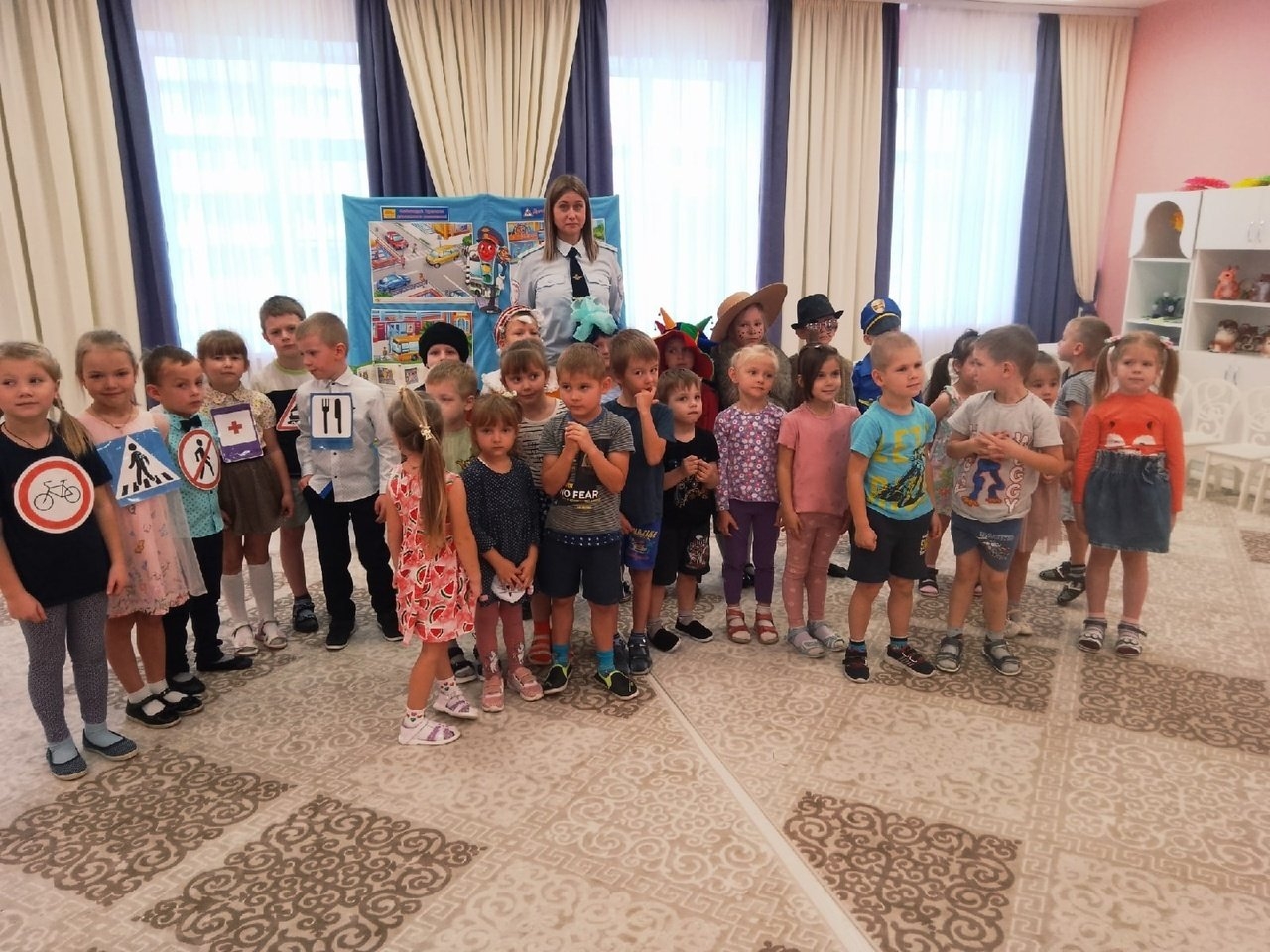 В ходе мероприятия детям показали представление со сказочными героями о том, что может быть если не соблюдать правила на дороге. После представления сотрудником ГИБДД была проведена беседа с детьми.