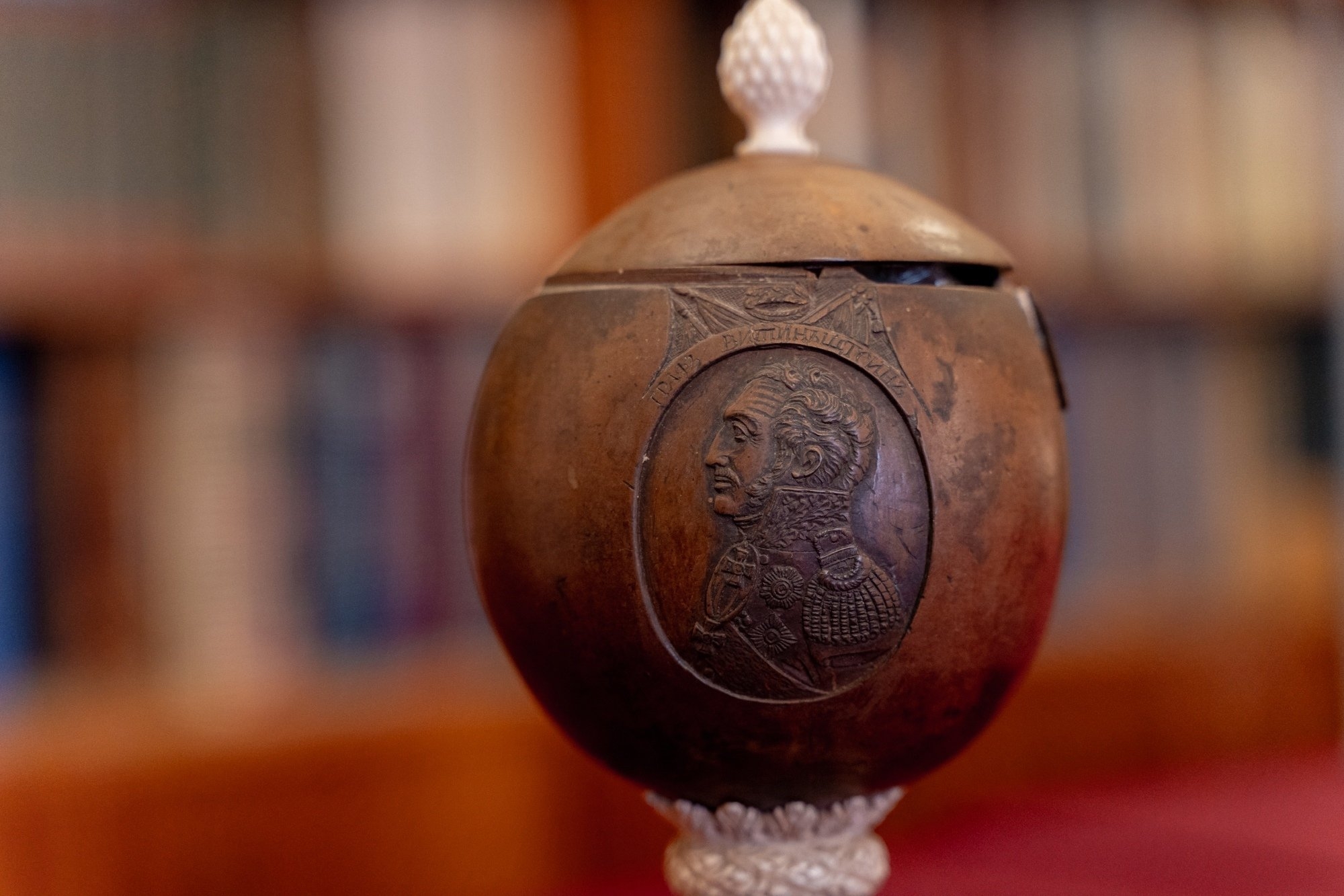 – Примечательно, что этот кубок сопровождает пояснительная записка, составленная потомком рода Вохиных-Булаевских. В ней он сообщает, что изначально кубок принадлежал участнику Отечественной войны 1812 года генералу-майору Николаю Васильевичу Вохину. По семейному преданию, он участвовал в Бородинской битве. При атаке французов он защищал свою пушку, во время чего потерял палец на руке, – подчеркнула Жанна Короткова, хранитель предметов этнографии и декоративно-прикладного искусства Псковского музея-заповедника.
