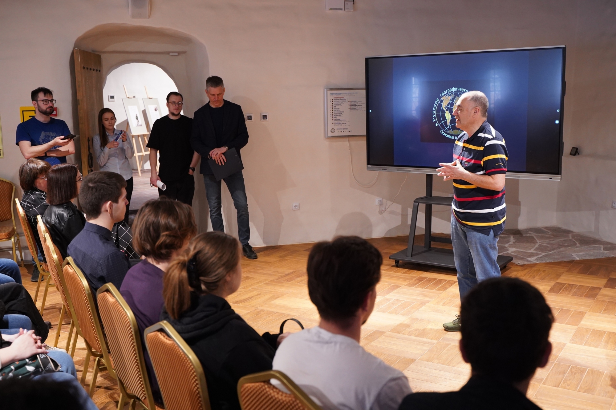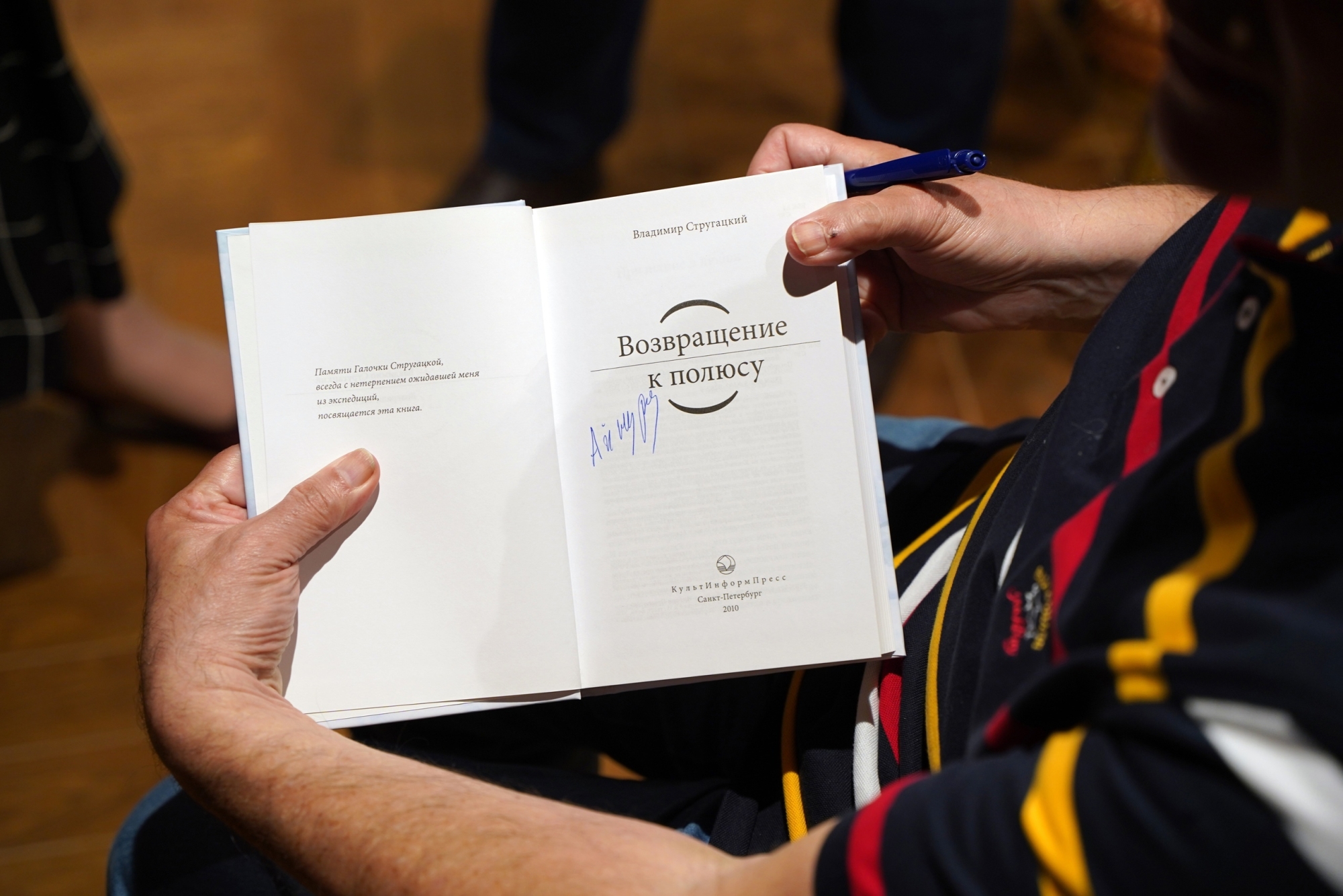 Встреча началась с показа документального фильма «Полярное счастье», посвященного академику Алексею Трешникову. После показа Владимир Стругацкий рассказал гостям о своих путешествиях и поделился знаменитыми байками, а участники неформального урока географии смогли задать путешественнику интересующие их вопросы о его необычной жизни и трудностях покорения полюсов нашей планеты.