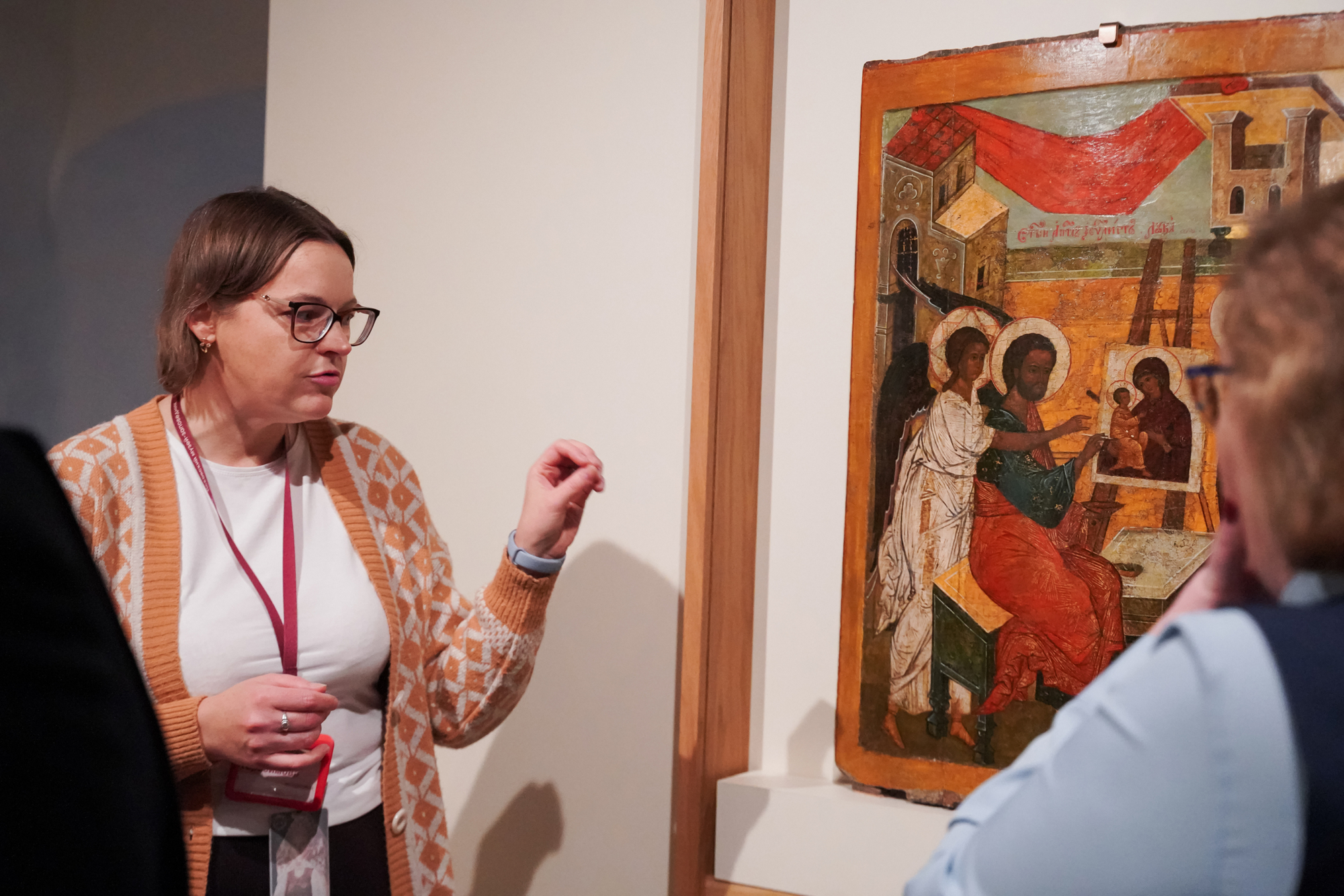 Экскурсию по музейному кварталу для врачей организовал главный внештатный онколог Псковской области, главный врач областного онкодиспансера Александр Юров. Гид музея Татьяна Герасимова познакомила участников с экспозициями, среди которых особый интерес вызвали выставки «Музей Псковского археологического общества» и «Живопись древнего Пскова».