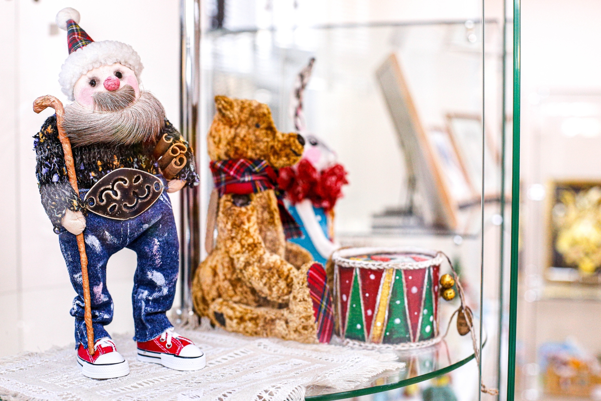 Работы представлены в разных техниках. Особое место занимает композиция из ватных игрушек.