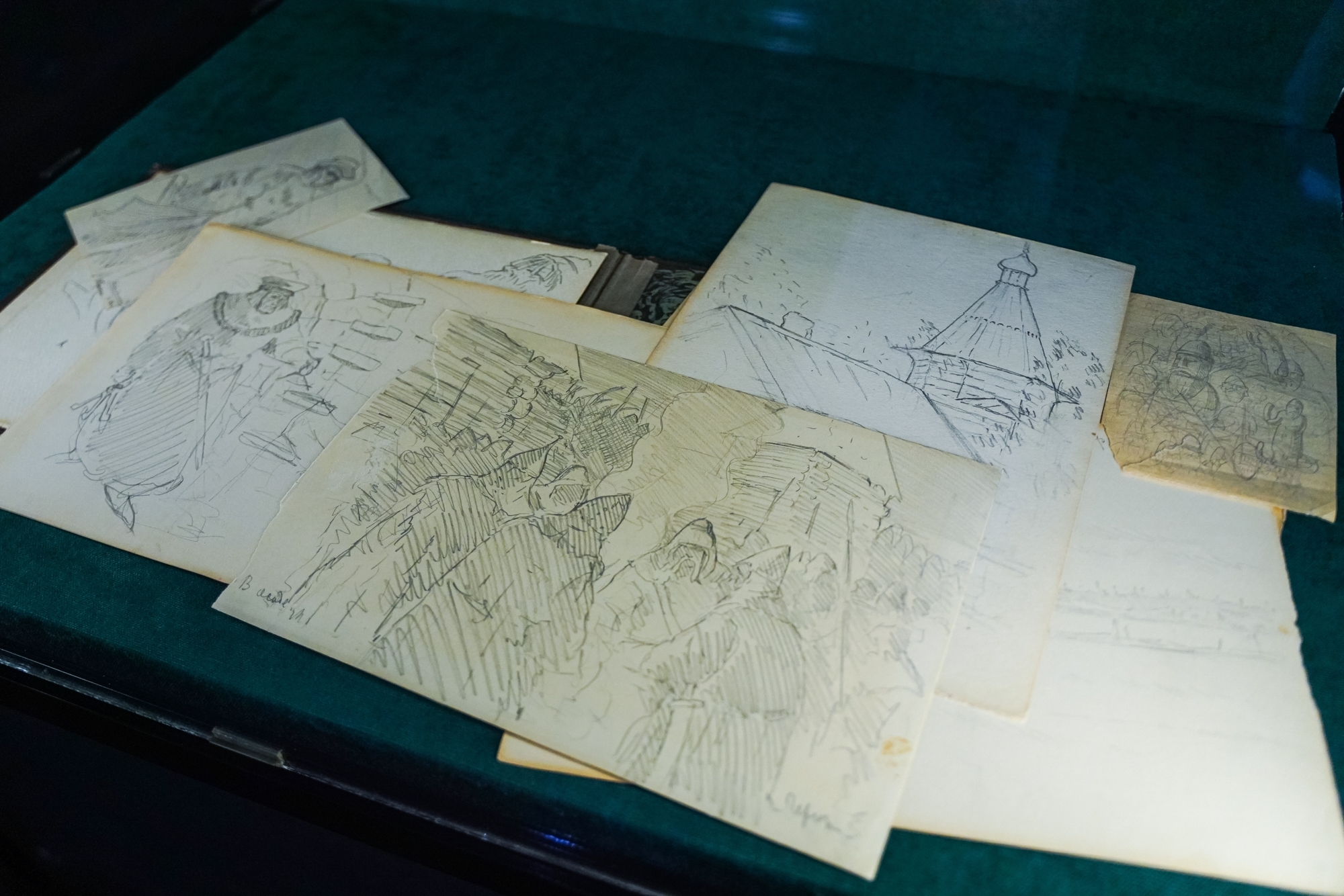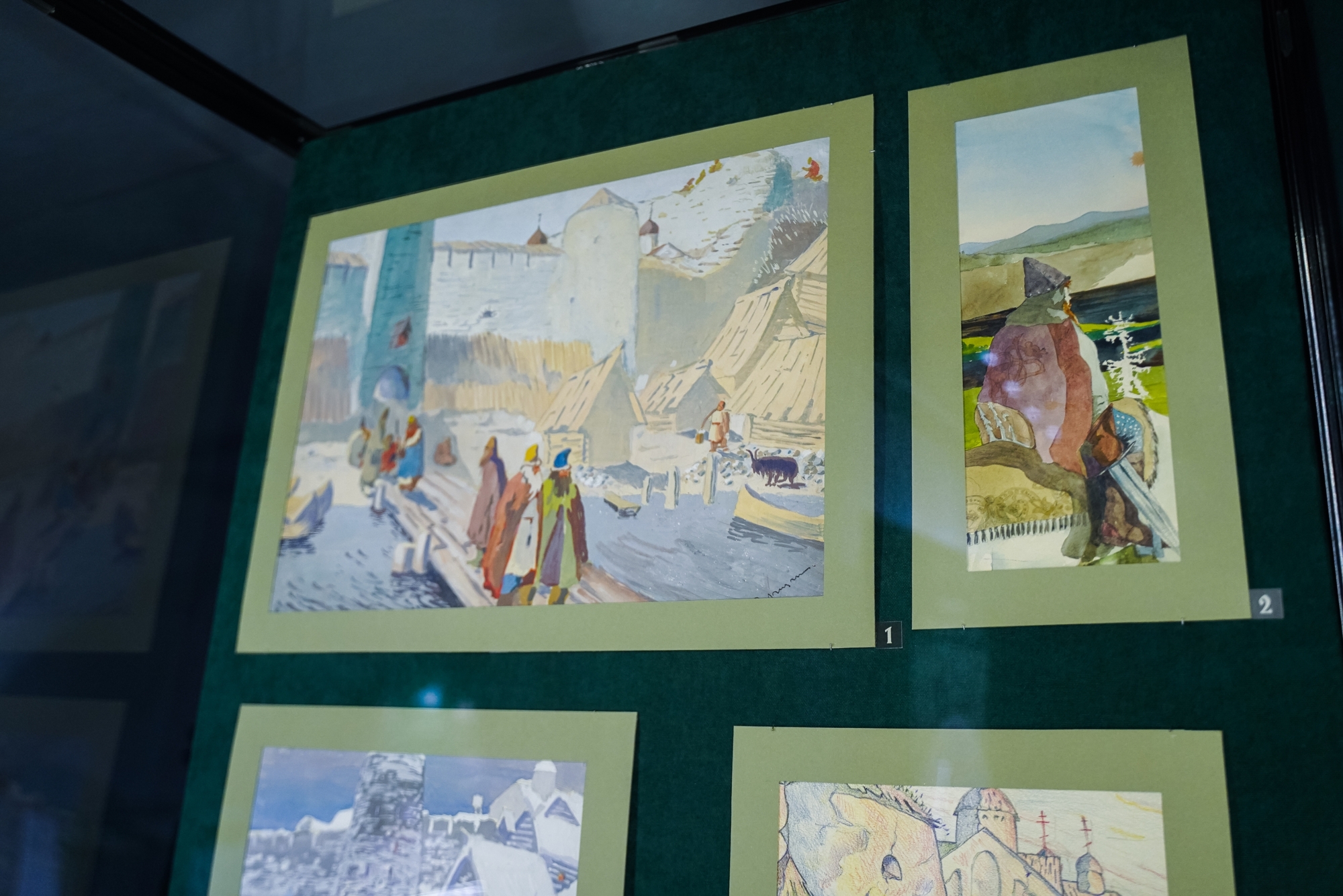 На выставке представлены рисунки Николая Чернягина, временным хранителем коллекции является научный сотрудник отдела славяно-финской археологии Института истории материальной культуры РАН Иван Стасюк.