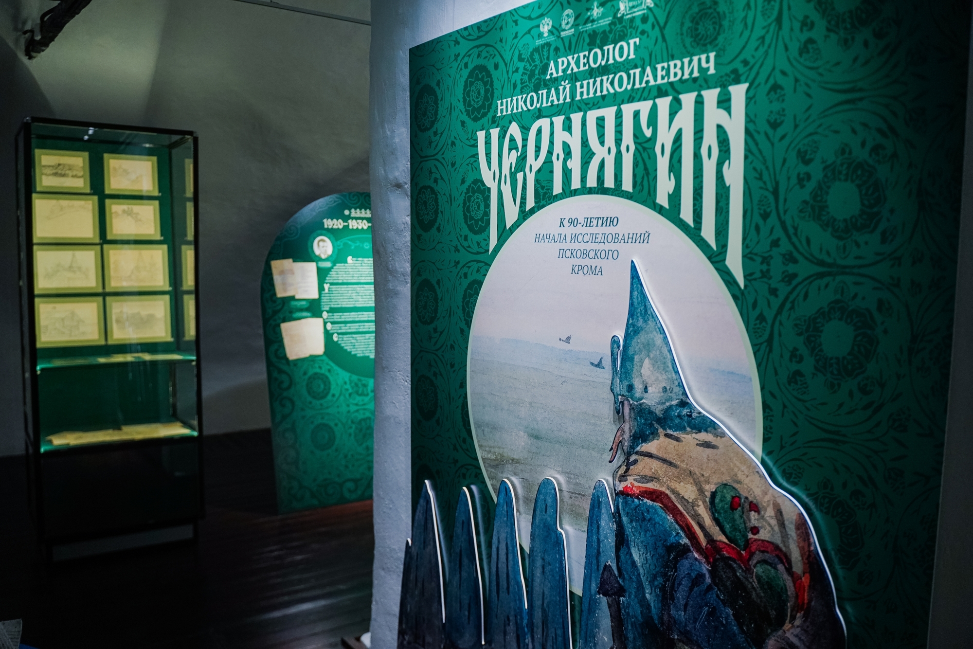 Выставка «Археолог Николай Николаевич Чернягин. К 90-летию начала исследований Крома» торжественно открылась сегодня, 19 декабря, в Приказной палате Псковского Кремля.
