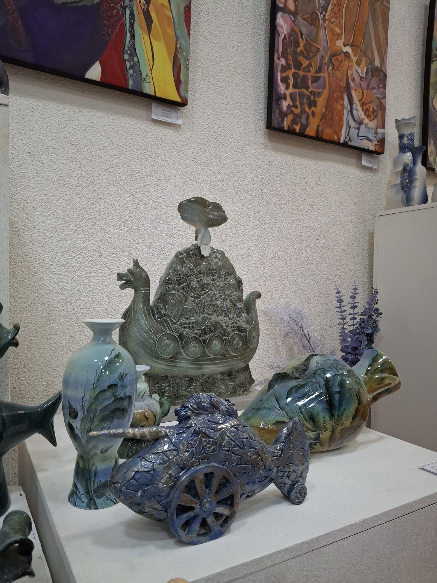 Посетителей выставки ждут душевные и ироничные сюжеты, сочные, полные природной живости пейзажи, сюрреалистичные и абстрактные композиции в живописи, красота фактур и загадочность символов в керамике.
