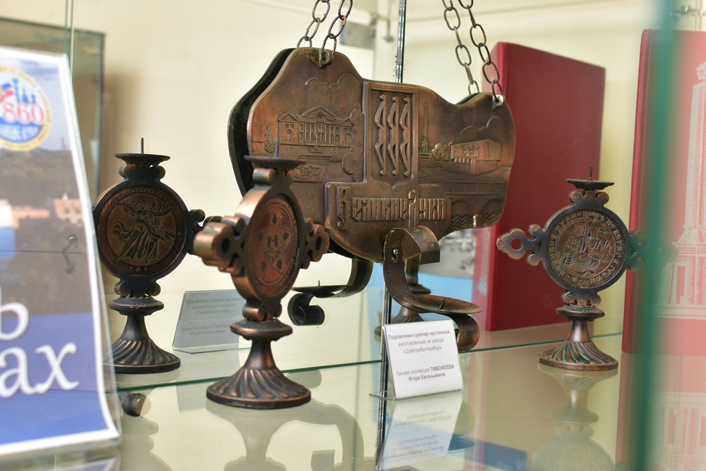 Здесь можно увидеть то, что обычно хранится в домашних шкафах, на антресолях, в заветных коробках — и лишь изредка достаётся, чтобы вновь пережить мгновения прошлого. Коллекция значков из личных архивов Почётного гражданина города Владимира Орлова и библиотекаря Ирины Крикуновой, подарочные издания книг, брошюры, наборы открыток из фонда отдела литературы по краеведению.