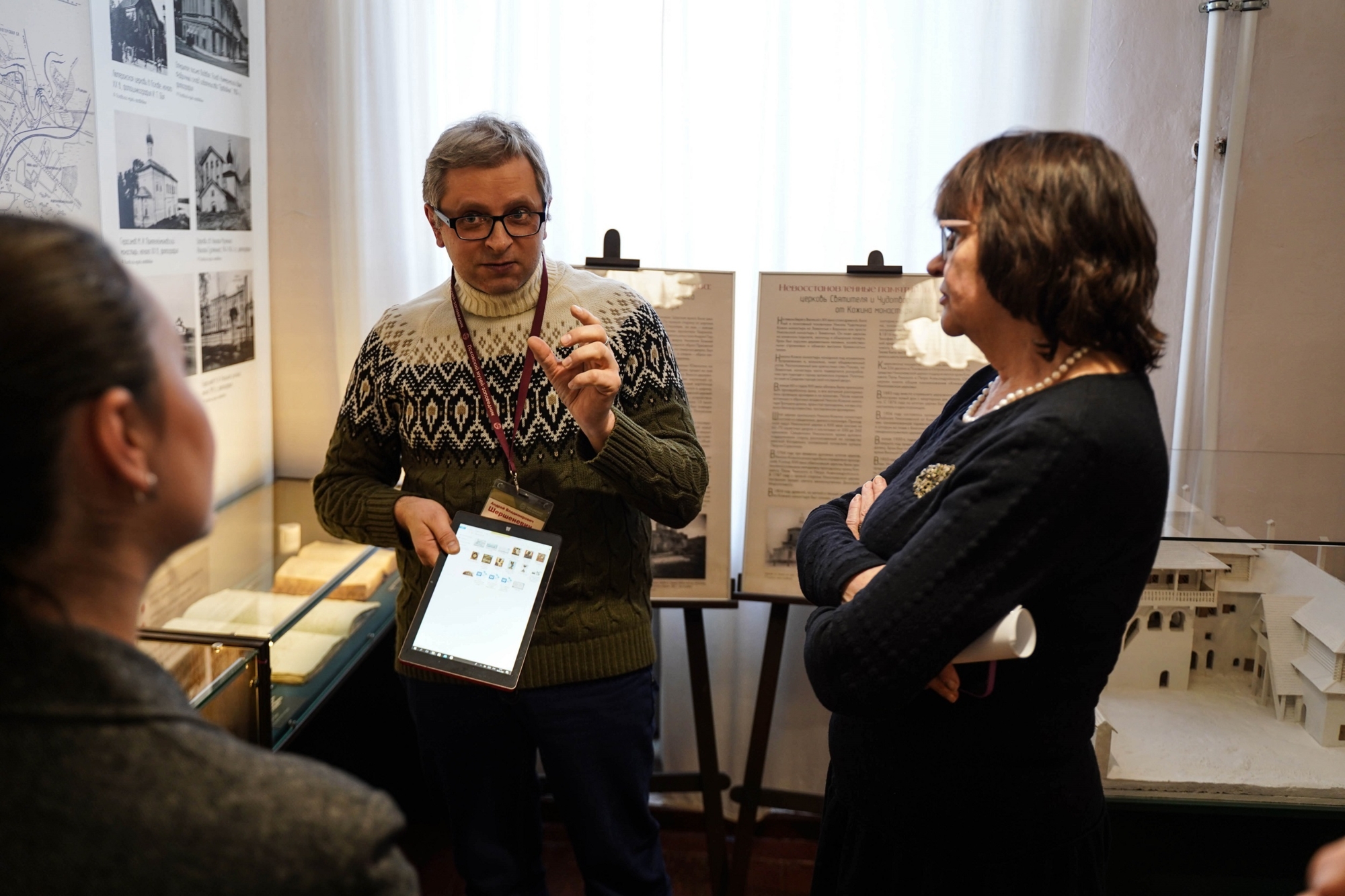 Сегодня выставка рассказывает о памятниках церковного зодчества – храме Святого апостола Андрея Первозванного Иоанновского девичьего монастыря и церкви святителя и чудотворца Николая от Кожина монастыря.