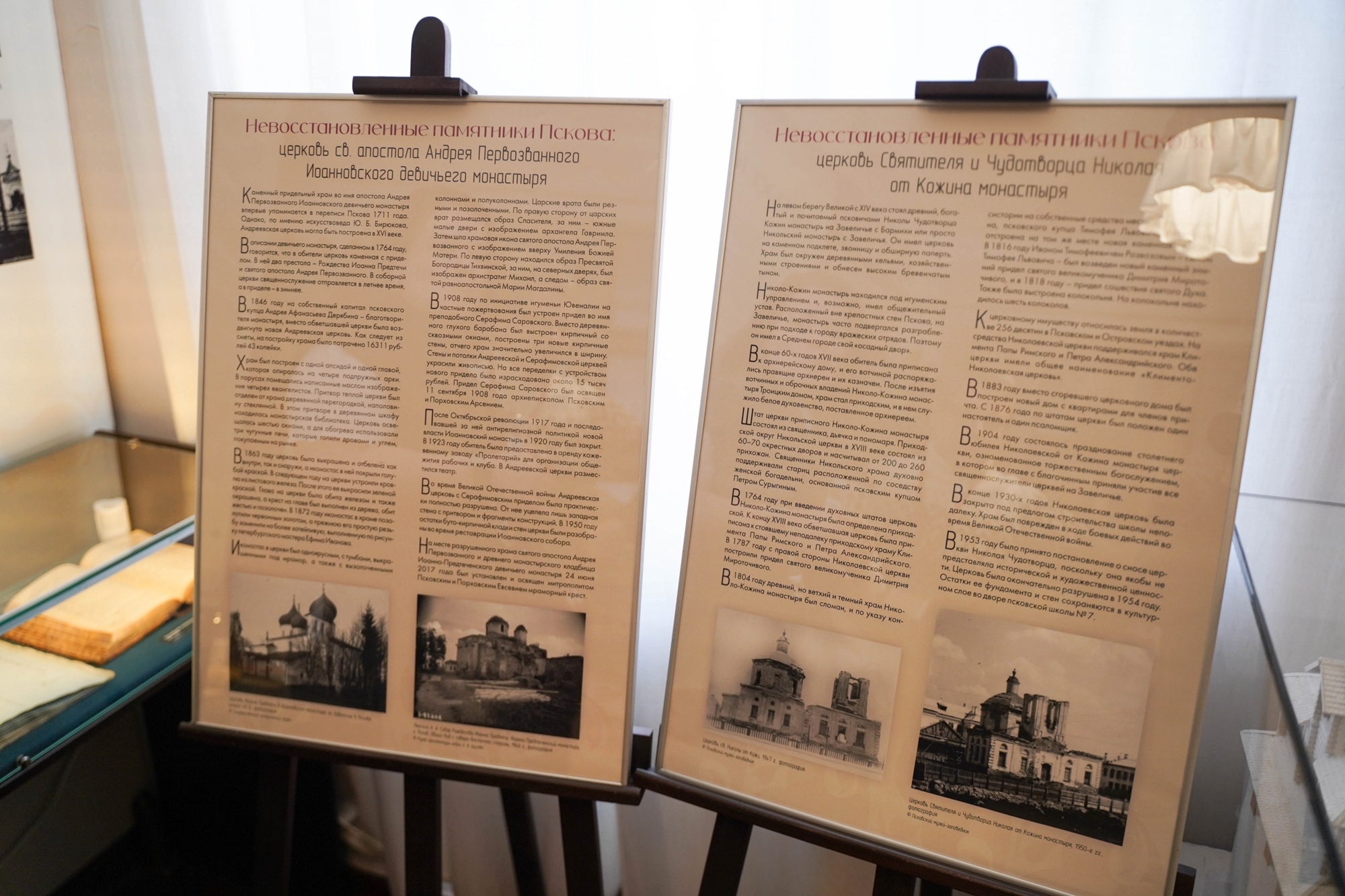 Куратор проекта, старший научный сотрудник сектора новейшей истории исторического отдела Андрей Шершеневич отметил, что каждый месяц на протяжении года выставка будет обновляться, комплексы будут сменять друг друга, в витринах появятся новые экспонаты из фондов Псковского музея-заповедника: фотографии, документы, церковная утварь и другие артефакты, раскрывающие историю каждого из 12 утраченных памятников истории и архитектуры. .