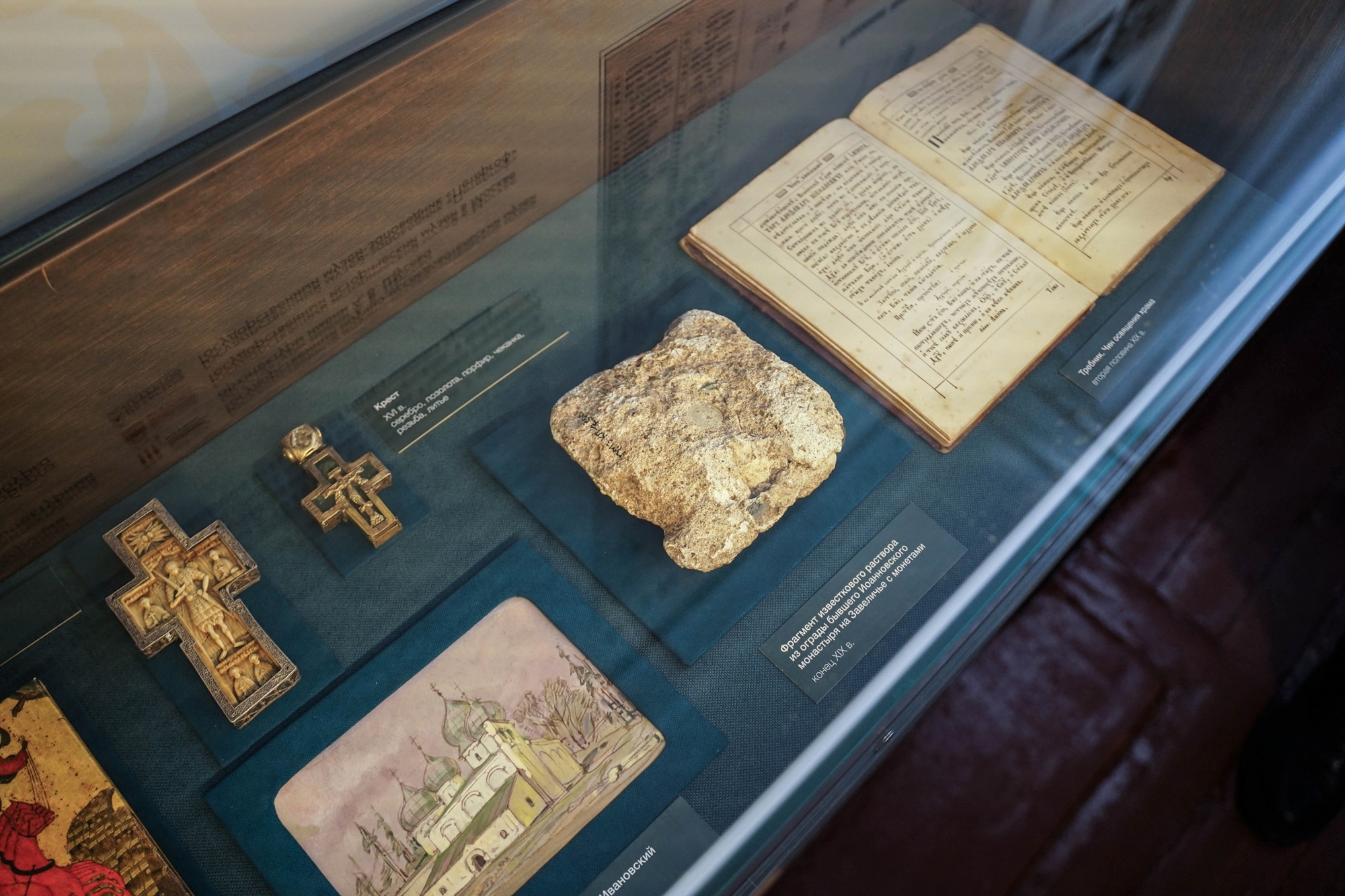 Посетители мемориального музея увидят кресты XV–XVI веков из собора Рождества Иоанна Предтечи, фрагмент известкового раствора с монетами Российской империи из утраченной ограды Иоанновского монастыря, графическую работу С. Антонова «Псков. Ивановский монастырь», книгу «Клировые ведомости церквей города Пскова за 1800 год», содержащие ведомость приходского храма бывшего Кожина монастыря, статью «К столетнему юбилею Псковоградской Николаевской церкви от Кожина монастыря» протоиерея Дмитрия Невдачина из «Псковских епархиальных ведомостей» и другие экспонаты.