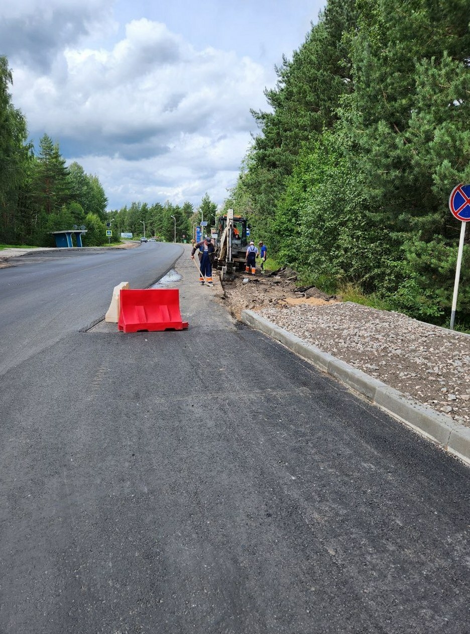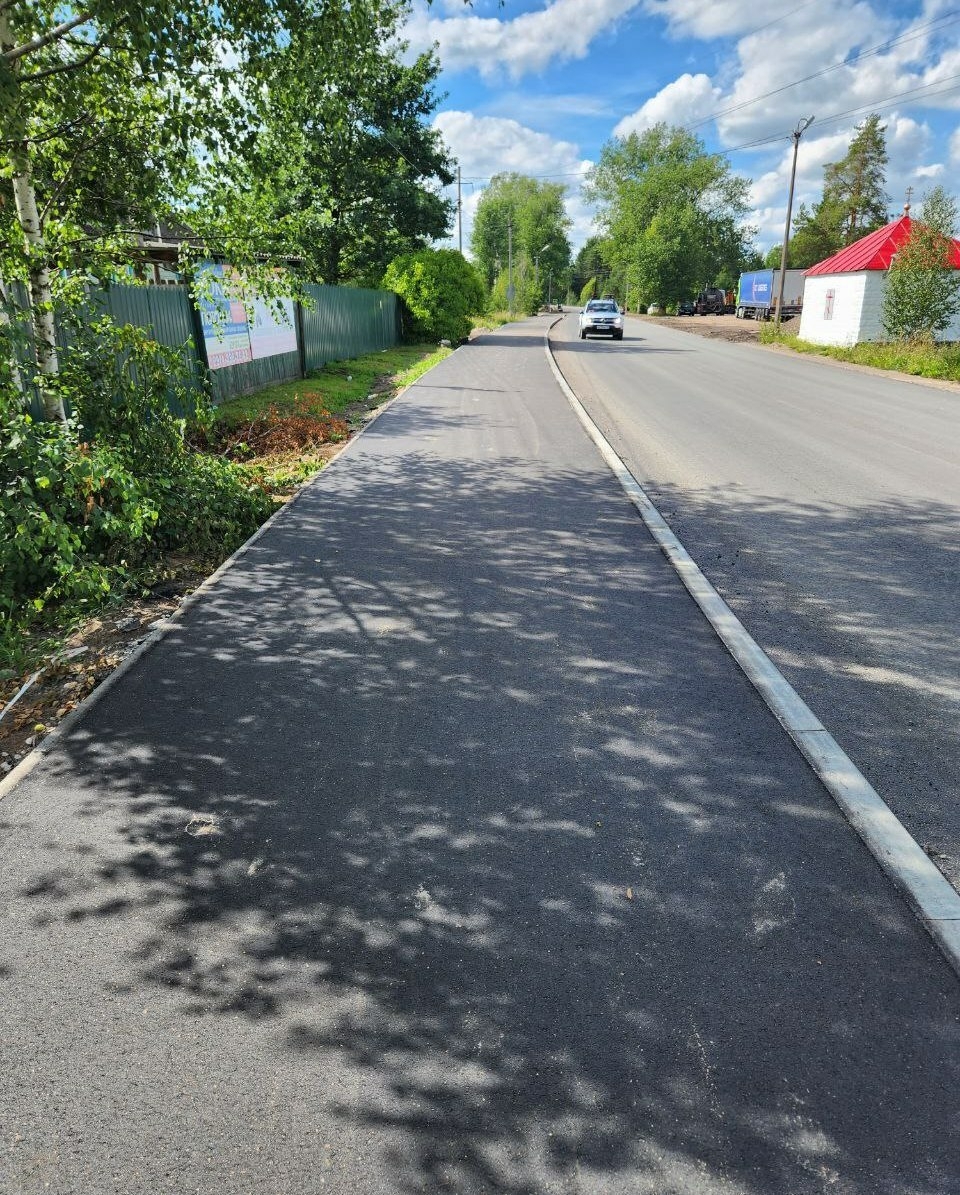 На объекте выполнен целый комплекс работ: восстановлено асфальтобетонное покрытие на проезжей части, заездных карманах и съездах, отремонтированы водопропускные трубы, заменен бортовой камень, а также выполнено устройство тротуара.
