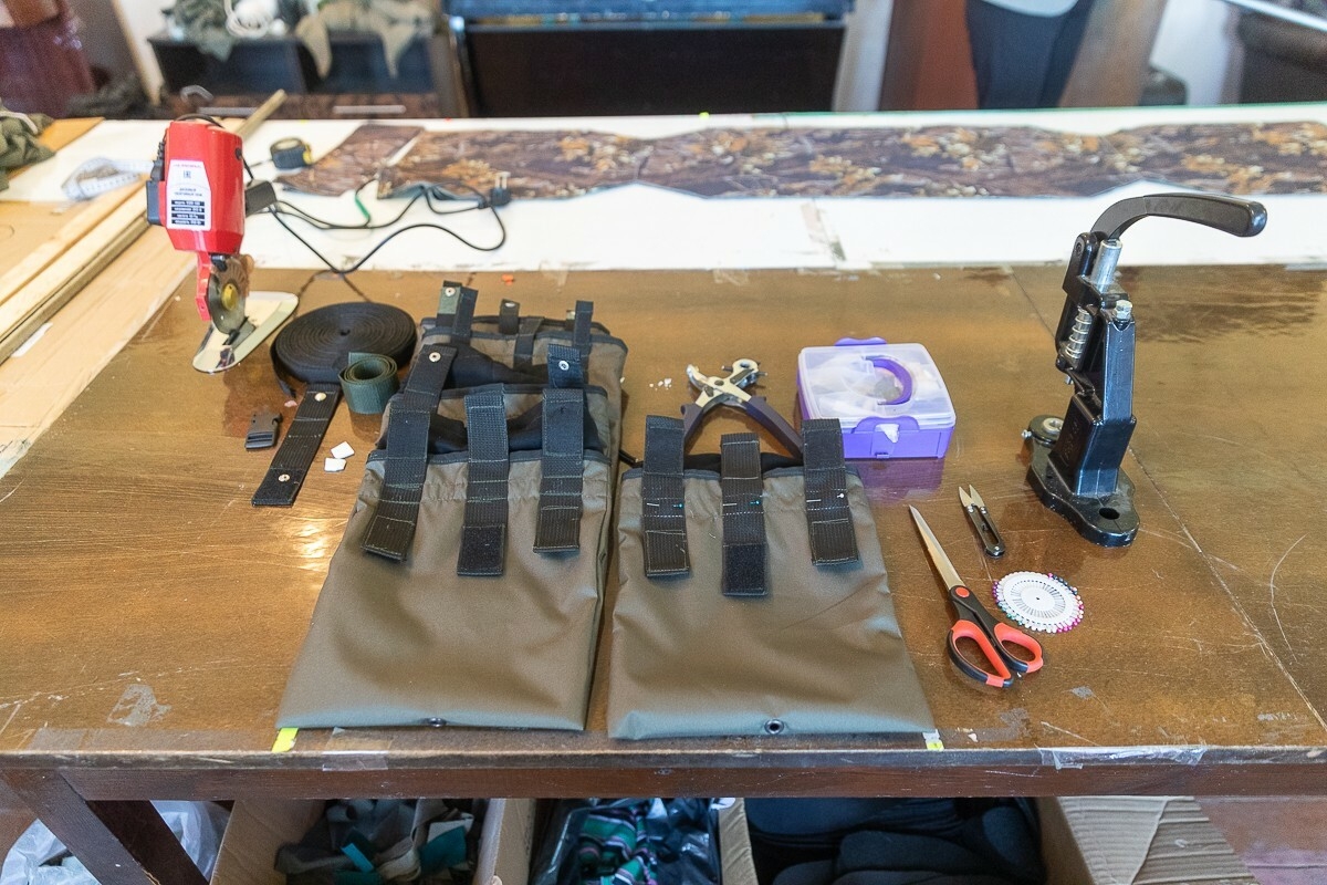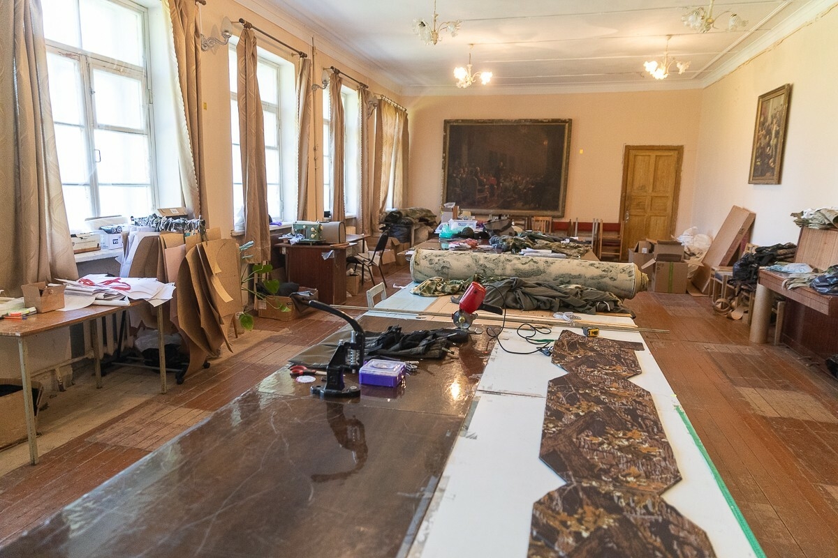 Группа неравнодушных граждан организовала в местном Доме офицеров швейный цех. Женщины приходят сюда после работы и в выходные, сообща готовят к отправке в зону боевых действий свои изделия. Начинали они с пошива нижнего белья и балаклав. Сейчас научились делать элементы экипировки, приближенную к тактической одежде.